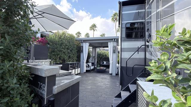 Lot 739 beautifully hardscaped and offers one of the most private lots in the resort, distinguished by its mature ficus trees.