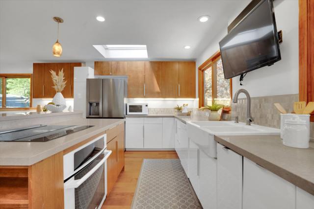 Discover total serenity at this exquisite and warm family home. The home has been very thoughtfully renovated to include all the comforts one could ever need. With an open floorplan kitchen and living room, and several floor to ceiling windows. Perfect for taking in the verdant green of the surrounding forest. The home is filled with abundant natural light, benefiting from the natural clearing the home was built on. Sweeping decks wrap around the back, facing the lush forest, offering ample space for hosting, gathering, and outdoor meals. A perfectly placed outdoor hot tub sits on the deck right next to the primary suite. The primary suite enjoys its own level of the home and access to the deck through sliding doors. Enjoy your morning coffee outside, taking in the sights and sounds of nature. A generously sized In-Law suite (ADU) provides flexible room for guests, room for activities, or rent it out. The property unfolds across a generous 2.5+ acre lot, providing an expansive canvas for outdoor enjoyment. Here, the true magic reveals itself: breathtaking panoramic views glimpsing the San Francisco Bay and the majestic surrounding forest. To be this surrounded by nature, while still being so unbelievably close to all the cities on the peninsula (15 min to 280), is truly special.