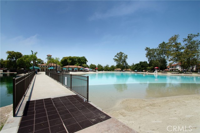Just steps from the tranquility of Rancho Santa Margarita Lake, this beautiful residence could be yours in the coveted lakefront community of Brisa Del Lago I. The spacious single-level home, with no interior or entry steps, welcomes you with luxury vinyl plank flooring, and lots of natural light. The living room is equipped with a stylish stone-surround fireplace, perfect for cozy evenings, while sliding doors open to a large, private, west-facing patio framed by graceful palm trees, a serene space for watching the sunset. The kitchen has been tastefully remodeled with brand-new quartz countertops, a deep stainless steel sink, breakfast bar seating, and gas range. The generous primary suite offers doors to the patio, while the large secondary bedroom provides flexibility for guests, work, or relaxation. Hallway closet is large enough to be used as desk space. Additional highlights include in-unit full-size stackable laundry, plantation shutters throughout, and two garage spaces: one attached with direct access and another detached for added convenience or storage.Indulge in resort-style amenities including a community pool and spa with panoramic views of the Lake. Ideally located just 1 block from the highly rated Trabuco Mesa Elementary School and Trabuco Mesa Park’s playground & tennis court. Named the safest city in Ca, Rancho Santa Margarita is also one of the most amenity-rich cities in Orange County. Residents enjoy access to the Beach Club, a splash pad, four Olympic-sized pools, fishing, 13 parks, picnic areas, sports courts, soccer fields, baseball diamonds, tennis courts, multiple playgrounds, and a vast urban trail system. The community hosts various events throughout the year, including spectacular 4th of July fireworks over the lake. With its rare combination of single-level ease, thoughtful upgrades, and resort-style surroundings, this is where every day feels like a getaway.