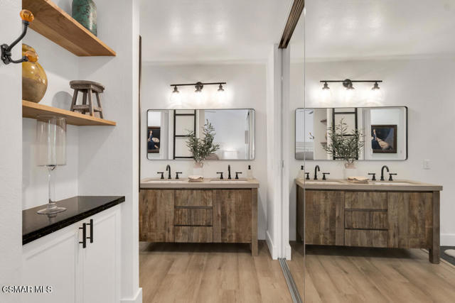 This beautifully updated single-story home offers the perfect blend of comfort, style, and convenience. Enter through a private front courtyard with a tranquil fountain that sets the tone for this serene and inviting residence.Inside, you'll be greeted by high-end luxury vinyl plank flooring throughout and a bright, open layout that feels both modern and welcoming. The newly remodeled kitchen is a chef's dream, complete with upgraded shaker cabinets, stainless steel appliances, a Wolf range, pot filler, genuine quartzite stone countertops and a farmhouse sink. The dining and living areas feature motorized window blinds, allowing you to easily control natural light and privacy.The primary bedroom suite includes a wall mounted TV and a remodeled bathroom with a walk-in shower. The secondary is quite spacious with a full bathroom conveniently located in the adjacent hallway.The two-car garage provides more than just parking, it includes a private laundry room with washer and dryer, epoxy flooring, an EV charger, water softener and attic storage with a pull-down ladder for easy access.Enjoy California living in the backyard oasis, featuring a covered patio, and spa, perfect for relaxing or entertaining.Additional highlights include a Nest thermostat, Ring security system, and housing provider will pay electricity, spa maintenance, and gardening services. This home offers high-end living in a peaceful, single-story setting, a rare opportunity you won't want to miss.