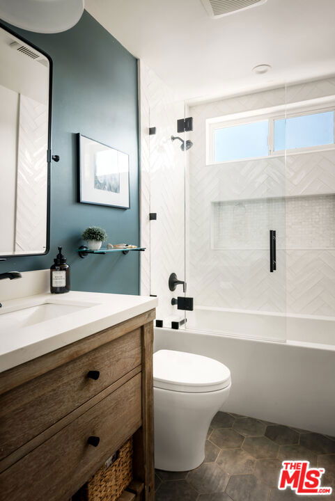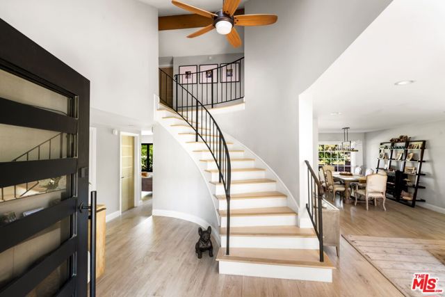 Tucked away on a quiet cul-de-sac in the desirable Fountainwood neighborhood of Agoura Hills, this beautifully renovated home offers rare privacy, premium finishes, and modern functionality and is available for rent for the very first time. Offering approximately 2,350 SF of superiorly updated living space on an expansive 11,000 SF lot, the home features extensive upgrades throughout. A private courtyard entry opens to a light-filled foyer with high ceilings and recessed lighting. The spacious living and dining rooms flow effortlessly into the fully updated kitchen, showcasing Merit cabinetry, Taj Mahal quartzite countertops, Thermador induction cooktop, and other premium appliances. The kitchen overlooks the inviting family room, highlighted by a limestone plaster fireplace for relaxed gatherings. The office on the main level includes custom built-ins and a dry bar with wine fridge - perfect for working or entertaining in style. Upstairs, the primary suite enjoys serene treetop views, a private deck, and a refreshed bath with dual vanities, while the secondary bedrooms share a fully updated bathroom. Outside, the expansive backyard offers established lawn, mature trees, and multiple patios backing to open space offering ultimate privacy - ideal for entertaining or quiet relaxation. The yard is also a gardener's delight, with various fruit trees including lemon, lime, grapefruit, clementine, apple, and more. A saltwater hot tub (maintained by the landlord) completes the outdoor retreat, providing the perfect setting for year-round enjoyment. Designed for modern sustainability, the home features landlord-provided solar panels and a whole-home backup battery system that substantially reduce monthly energy costs and reliance on the utility grid. A Level 2, 240V electric vehicle charger offers additional convenience for EV owners. Set within one of Agoura Hills' most sought-after neighborhoods, this home combines privacy, modern comfort, and proximity to top-rated schools such as Willow Elementary, Mariposa, and Sumac Elementary (all schools of choice), as well as local parks and scenic hiking trails.