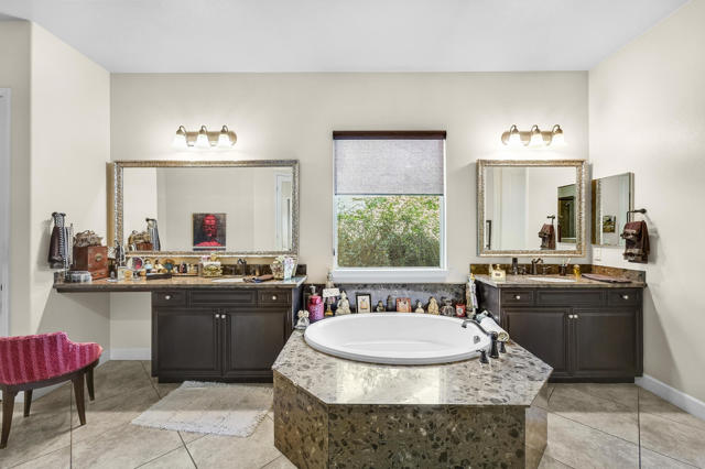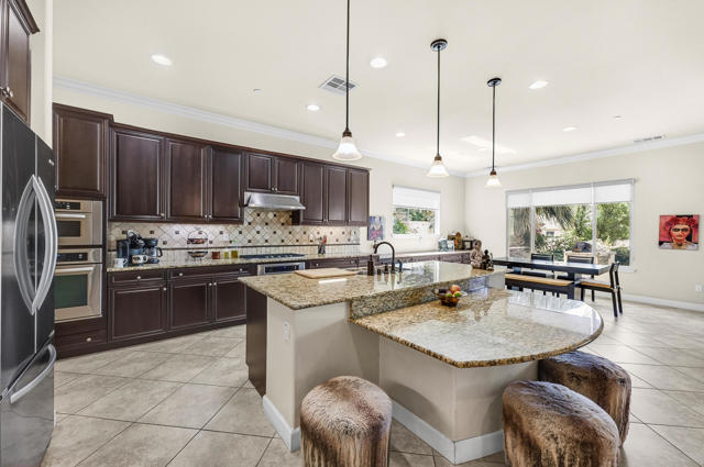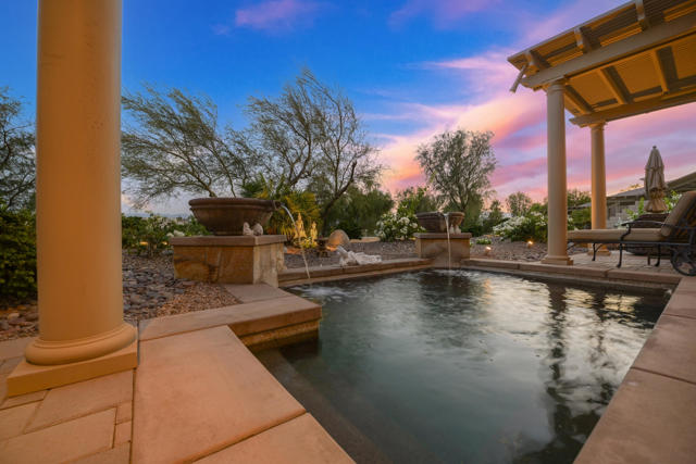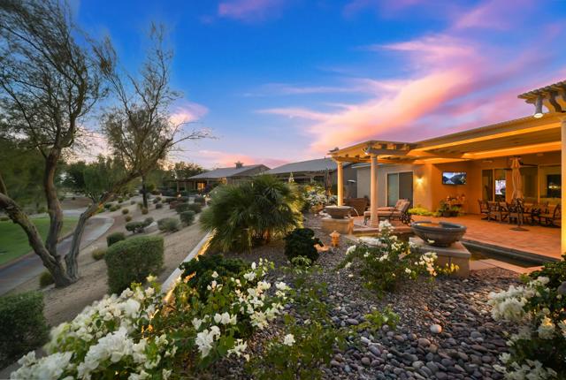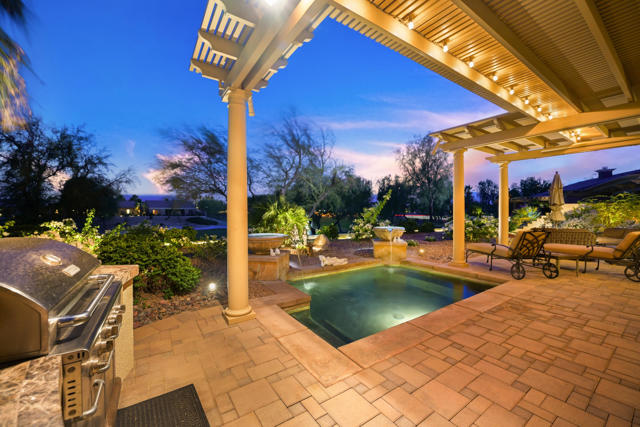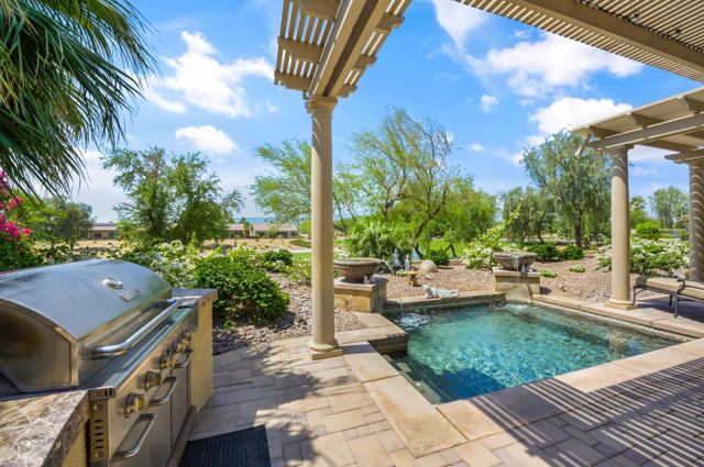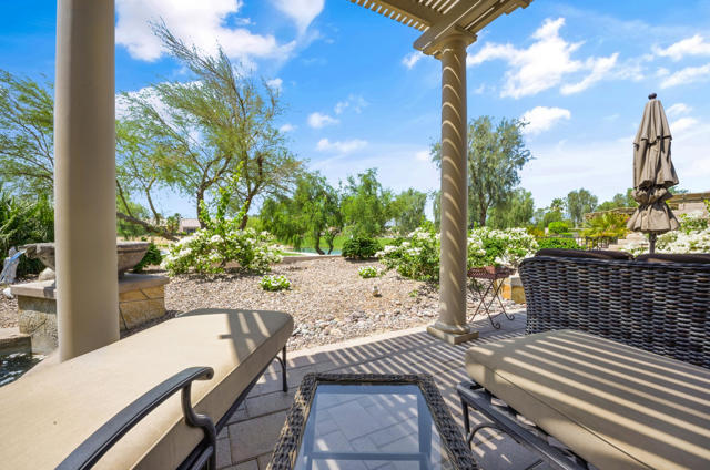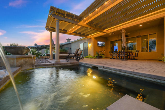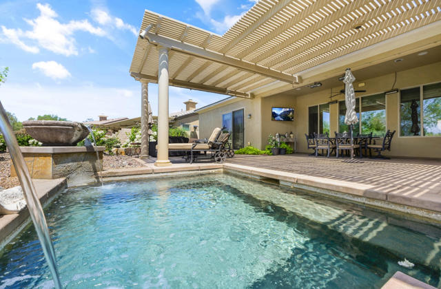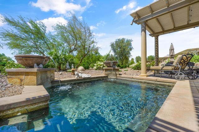 Refined Desert Living at Its Finest, Available for a furnished 1 Year lease. | 81569 Corte Monteleon Experience the serenity of desert mornings and the golden glow of evening sunsets in this beautifully designed Socialite floor plan within Sun City Shadow Hills, Indio's premier 55+ resort community. Built in 2012 and meticulously maintained, this 3-bedroom, 3-bath residence offers 2,955 sq. ft. of refined living on a 7,405 sq. ft. lot. Step inside and be greeted by elegant tile floors that flow seamlessly through open-concept living spaces, drawing your gaze to breathtaking south-facing views of twin lakes and the 6th hole, framed by the majestic San Jacinto Mountains. Enjoy tranquil mornings and golden evenings in your private backyard retreat, complete with a sparkling saltwater spool accented by graceful Greek-inspired water features and a built-in BBQ station ideal for al fresco entertaining. Inside, entertaining is effortless. The chef's kitchen serves as the heart of the home, featuring stainless steel appliances, a generous island with seating for four, a spacious pantry, and an adjoining office nook perfect for quiet mornings or creative afternoons. Nearby, the wet bar, finished with rich dark wood wine racks and a wine fridge, sets the stage for memorable gatherings. A double-sided fireplace adds warmth between the great room and dining area, while a wide-blade ceiling fan stirs a gentle breeze beneath soaring ceilings. The primary suite is a serene sanctuary with two oversized closets, dual vanities, a deep soaking tub with a ledge, and a separate shower for spa-like relaxation. Living in Sun City Shadow Hills means more than owning a home. It is an invitation to embrace a lifestyle. Enjoy championship golf, two clubhouses, state-of-the-art fitness centers, indoor and outdoor pools, tennis and pickleball courts, dog parks, and more than 60 active clubs. Whether your passion is art, music, sports, or community, you will find your rhythm here. Welcome to your private desert paradise. Available for this season at $5,500 per month.