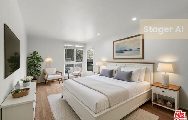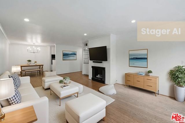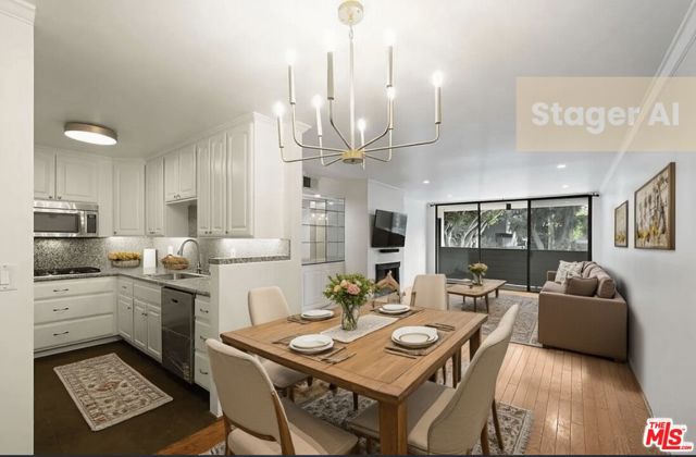 WELCOME HOME! Freshly painted, this light and bright recently renovated 2 bed/ 2 bath unit is situated on a quiet, tree-lined street in the heart of one of LA's most desirable neighborhoods. Close to Melrose Place and some of the city's finest restaurants, Boutiques, farmers marked , Alfred's Coffee, grocery stores such as Gelsons , as well as convenient proximity to Cedars Sinai. The inviting open and bright layout features a modern kitchen with stainless steel appliances, dining area and cozy gas fireplace in the open living area with direct access to the patio.The primary suite is filled with natural light and spacious closets, leading to a spacious remodeled ensuite bath.The full guest bath is right across from the 2nd bedroom which has access to the patio. Additional features include central A/C and heat, plus two side-by-side parking spaces in the gated, covered garage. Building amenities include secure entry with guest parking and security cameras, community swimming pool, sauna, rec room and fully-equipped gym. In addition the gorgeously landscaped neighborhood is filled with fine architecture, abundant shade and green space as well as a tranquil neighborhood park with waterfall, community center and playground area. Available now.