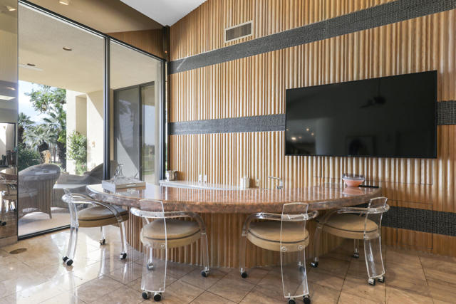 (*Booked NOV 2025- APRIL 2026*) One level 4 bedroom, 4 bathroom located in the highly desirable Tamarisk area in Rancho Mirage, California. This is like having your own private pool & spa on a mini estate because there are only 7 homes in this luxury home enclave. 2 beautiful blue tennis courts. Great room has soaring 16ft ceilings and a wall of glass which boasts breathtaking panoramic views. This celebrity chef's kitchen offers professional 36' cooktop with Italian burners and two 36' French door refrigerators. The spacious main bedroom suite has large walk-in closet plus wardrobe closet. Bedrooms are ensuite. You will have privacy in a convenient location in the heart of Rancho Mirage between the highly sought after Tamarisk area and popular Mission Hills Country Club - yes - drive your golf cart across the street to Mission Hills Country Club if you wish. Also minutes from other destination desert valley attractions and highly rated Eisenhower medical facilities. You will have exceptional panoramic southern mountain views from the time you enter the front courtyard and also from interior living areas and from the relaxing back patio. 2-car garage attached garage with direct access. Solar panels. Smart TV's. Wireless Internet, and utilities up to $300-mo. (*Booked Nov 2024- April 2025*)