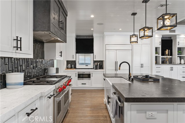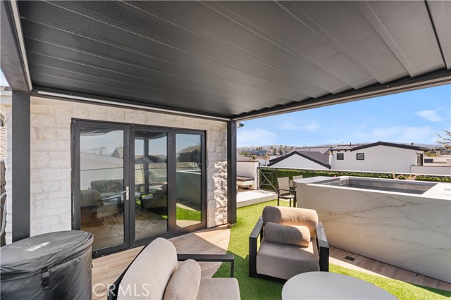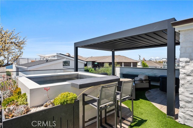 Step into your dream home on one of the most coveted streets in Orange County. This custom-designed 4-bedroom, 4- bathroom residence on Peninsula Point offers a seamless blend of luxury, comfort, and coastal living. Impeccably furnished and move-in ready, this home is available for flexible lease terms with 30-day minimum stays and seasonal pricing. The open-concept main floor welcomes you with a sun-filled living room, dining area, and chef’s kitchen—all flowing through to multi-slide glass doors to a beautifully landscaped front patio. Perfect for entertaining or relaxing, the patio features a rectangular fire pit surrounded by a comfortable lounge area and mature greenery for added privacy. The gourmet kitchen centers around a stunning marble island with a farmhouse sink and seating for four. Equipped with top-of-the-line appliances including a 6-burner Wolf range, built-in refrigerator, coffee bar with microwave, and a butler’s pantry, this kitchen is designed for both casual and formal gatherings. A full bathroom on the ground floor provides easy access from the side of the home—ideal for rinsing off after a beach day. The 2-car garage, accessible from the alley, offers ample storage and includes a “garage fridge.” Upstairs, all four bedrooms are thoughtfully placed to maximize comfort and functionality. Two guest rooms share a stylish Jack and Jill bathroom, while the third guest room features its own en-suite bath with a tub and shower combo. A built-in desk in the hallway utilizes every inch of space efficiently, and a full laundry room with a sink and ample cabinetry adds convenience. The primary suite is a luxurious retreat. It includes a custom walk-in closet complete with shoe storage, jewelry drawers, and ample room for clothing and accessories. The bedroom opens to a private patio furnished with a seating area and fire pit, creating the perfect spot to unwind. The spacious master bathroom features dual sinks and an oversized walk-in shower. Crowning the home is the spectacular rooftop deck, designed for both relaxation and entertainment. Enjoy ocean views from the hot tub or relax in one of the two separate seating areas, one that has a fire pit. An enclosed rooftop studio enhances the space with a TV, fridge, microwave, and a reclining couch—creating a cozy, all-season retreat.