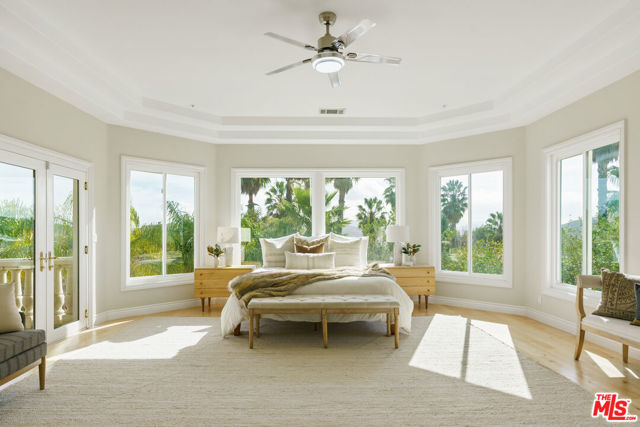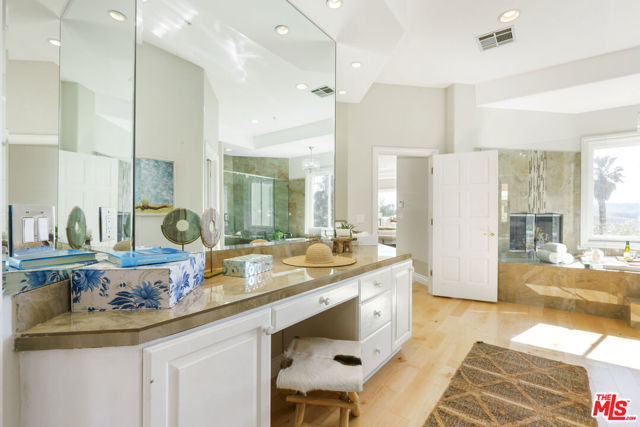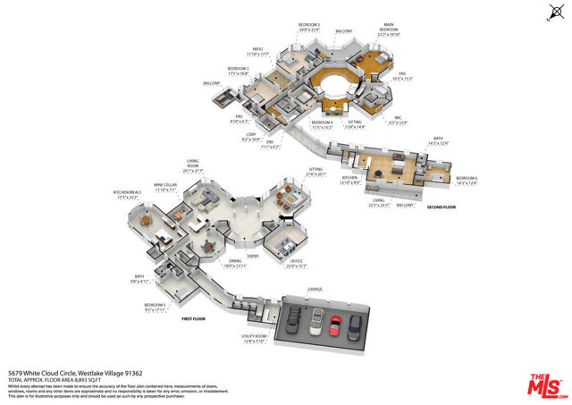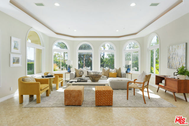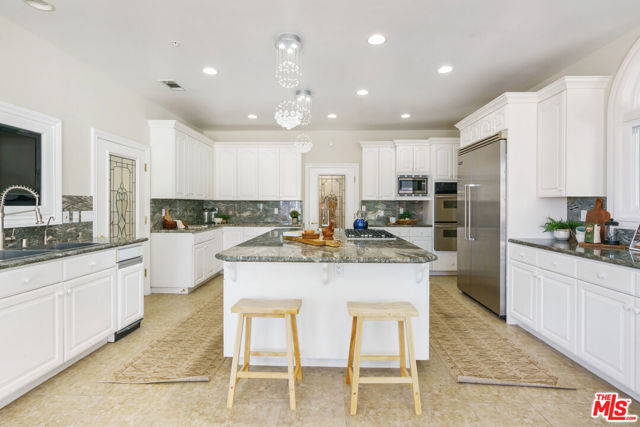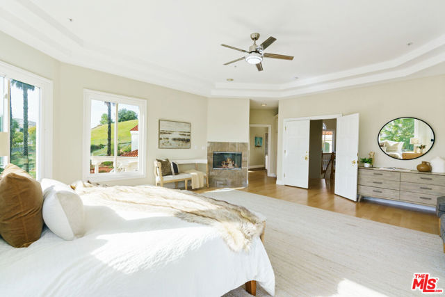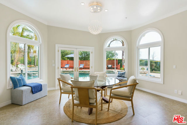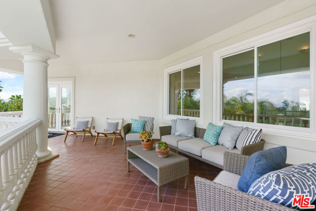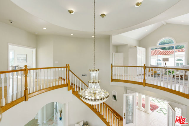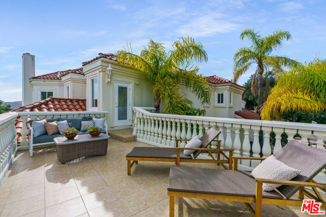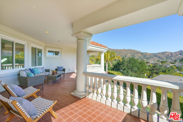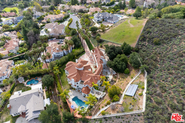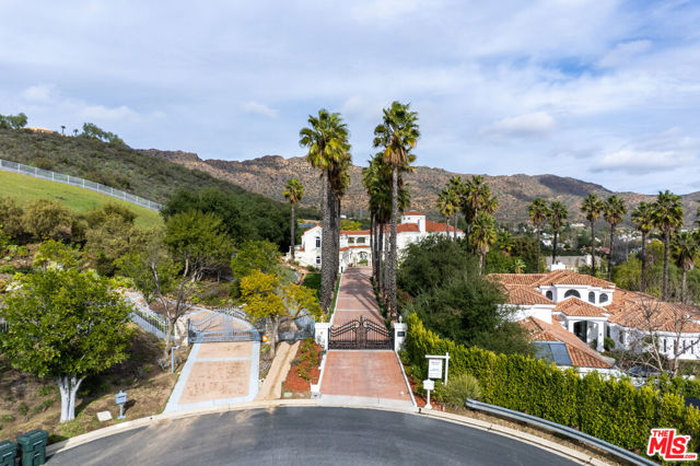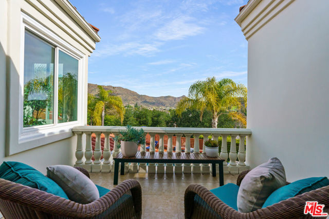Incredible privacy at this elegant home in secluded North Ranch area of Westlake Village -- defined by a wealth of natural light & open space. This property, perched on a hillside, includes extensive balconies overlooking beautiful vistas. The approx. 8,800 sq ft home on a 1 acre lot at the end of a cul de sac has a gated driveway lined with a colonnade of palm trees & opens into a 3 story soaring entryway & double staircase. This home includes 6 beds, 8 baths, 5 fireplaces, expansive kitchen, wine room, 2 wet bars, library/study, 4 car garage, pool & hot tub (w/removable fence for child safety), fire pit, guest house, game room, outdoor entertaining space with a bar & grill & a variety of fresh fruit trees that line private paths on the hillside grounds behind the house. Located near prestigious country clubs including North Ranch. Recently installed solar panels cover most electrical needs, 3 zone heating & AC system, and home security service are just a few additional amenities.
