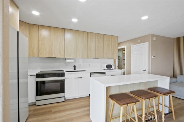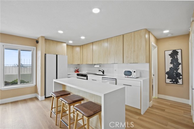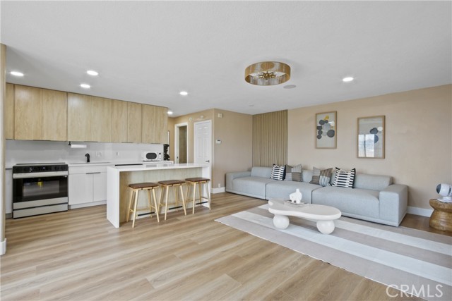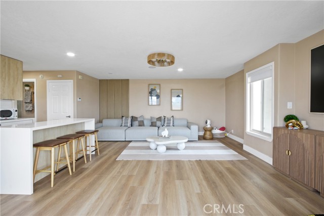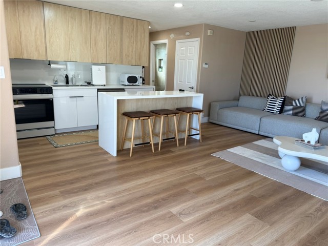 This charming 1-Bedroom / 1-Bath retreat in Huntington Beach is coastal living at its best. Located right on the beach, this freshly updated unit offers an ideal blend of comfort, style, and prime coastal convenience. Bright and airy living space with natural light flowing through and gorgeous LVP wood-style flooring throughout the living area and bedroom, giving the unit a modern, clean feel. Not to mention an efficient yet stylish kitchen featuring sleek countertops, ample cabinet storage, and brand new appliances With a spacious bedroom, a freshly remodeled bathroom, and a washer and dryer inside, this home comes with everything you could possibly dream of. Gated community with a designated covered parking spot in the parking structure. Don’t miss out on beach living at its best.