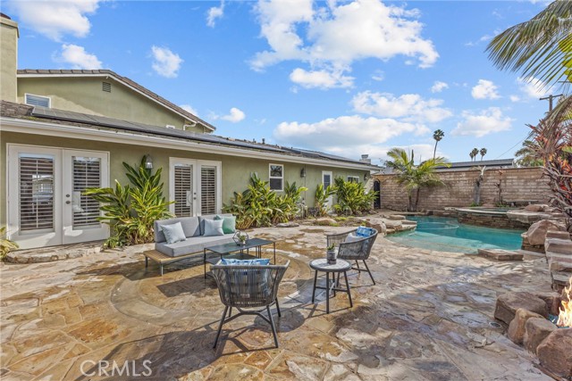 0.5–1.0 mi to parks, coffee, and groceries • Custom pool and spa • Dual primary suites Located in 92646, this remodeled and expanded home offers a flexible layout with four bedrooms, three bathrooms, and dual primary suites; including an upstairs retreat with a private balcony and a main-level suite featuring a remodeled rock-stone shower. The main living areas have cathedral ceilings, stone flooring, and an open flow to the kitchen, which includes stainless appliances, newer cabinetry, stone counters, and recessed lighting. 3 Bedrooms are downstairs with 1 primary upstairs. The backyard is designed for year-round outdoor living, with a custom pool, raised spa, stone bar, built-in BBQ, firepit, and extensive hardscaping. A front courtyard gazebo adds another outdoor seating area. Energy and system upgrades include owned solar (11.52 kW, installed 2021, approx. 16,828 kWh annual production), multiple AC units, dual-pane windows, laminate flooring upstairs, and permitted expansion work completed during the 2002 remodel. Conveniently close to everyday amenities: approx. 0.5 mi to Wardlow Park, 0.6 mi to Gisler Park and Ascon Trail access, and 0.7–1.0 mi to Peet’s Coffee, Starbucks, Stater Bros., Ralphs, restaurants, and retail at the Adams/Brookhurst corridor. Huntington State Beach sits roughly 2.4 mi away. Additional features include a two-car garage, brick-and-iron frontage, mature landscaping, privacy hedges, and outdoor lighting. This home combines functional space, upgraded systems, and multiple indoor-outdoor areas suited to coastal living in Huntington Beach. Offers Due 11/24 at 4pm