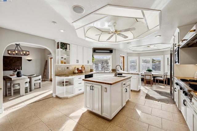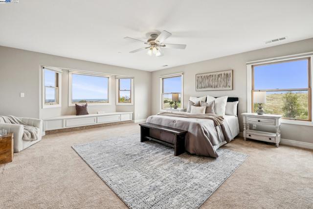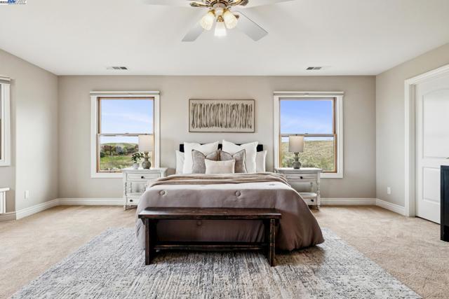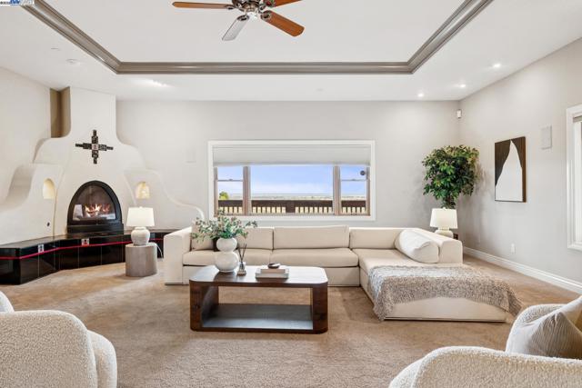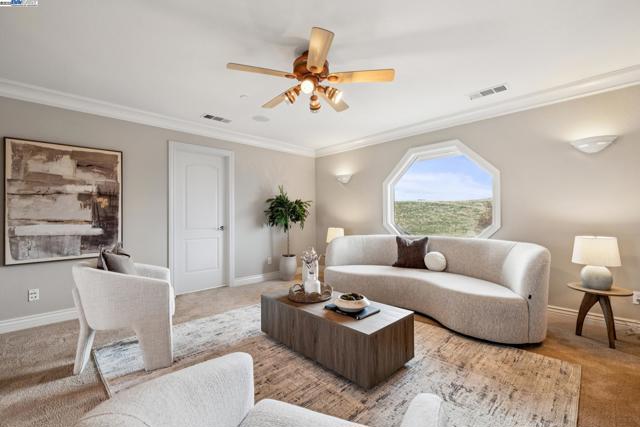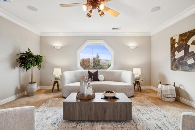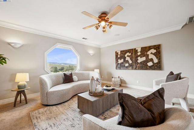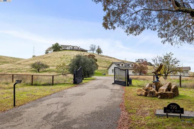 Discover 795 Silver Hills Dr, a custom-built estate in the gated Silver Hills community of Brentwood. Set on a hilltop with expansive views of Mt. Diablo, the Delta, and the Los Vaqueros Watershed, this home offers exceptional privacy while remaining close to Bay Area amenities. The main-level primary suite features a spa-inspired bath and an oversized walk-in dressing room with custom cabinetry. The chef’s kitchen includes premium appliances, abundant counter space, a butcher-block island, and a large pantry. The great room is ideal for gatherings, showcasing a striking fireplace, built-in media center with discreet rear access, and an integrated sound system. Two additional ensuite bedrooms, an open loft, and a dedicated library with handcrafted shelving provide flexible living and work spaces. Situated on over 11 acres, the property features multiple patios and decks, including a 2,400 sq ft quartzite outdoor living area with an outdoor kitchen, windscreen, waterfall feature, fireplace, and fire pit. A detached three-car garage with workshop and full bath, plus owned solar, complete this exceptional property.
