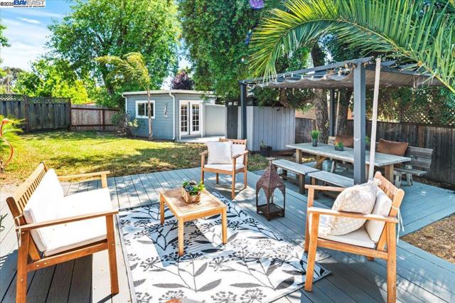 Charming 4 Bedroom with 3rd more like a retreat with dressing room AND a Bonus Studio on a LARGE Lot in a Quiet Court Location tucked away on a peaceful court, this beautifully updated single-level home offers the perfect blend of comfort, style, and charm. Boasting 3 bedrooms and 1.5 baths, the home features a bright and airy open-concept layout with both a cozy living room and a spacious family room—ideal for gathering, relaxing, or entertaining. Set on a generous lot, the property includes multiple decks perfect for alfresco dining, morning coffee, or sunset lounging. The playful décor and whimsical touches throughout the home give it a distinctive charm, making each space full of personality and charm. The bonus detached studio/shed offers endless possibilities—whether used as a creative workspace, guest retreat, or quiet getaway—bringing even more versatility to this spacious property. The previous owners used it for a music studio! With its combination of updated features, functional layout, and a delightfully unique aesthetic, this home is a rare gem that balances everyday living that is cozy and enjoyable. Castro Valley Schools!! Great location!!