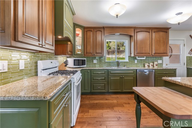 JURUPA VALLEY - This turnkey single-story, POOL HOME is located in a desirable commuter- and family-friendly neighborhood and is an affordable option to break into homeownership! With 1,747 SQFT, 3 bedrooms and 2 bathrooms, this home’s well-thought-out and welcoming floorplan offers open and bright living spaces. As you enter, you are greeted by a formal entry, a large dining area with fireplace, and a beautifully updated kitchen with enormous center island offering breakfast counter seating, a walk-in pantry and workstation, granite counters, gas range, microwave, dishwasher, recessed lighting and numerous cabinets. An oversized family room with vaulted ceiling, second fireplace, and access to the backyard and garage is adjacent to the kitchen. The primary bedroom is spacious with a large closet and a tastefully updated en suite primary bathroom with walk-in shower. The two other bedrooms and hall bathroom are all generously proportioned and equally updated. Additional amenities include: dual pane windows, central HVAC system, tankless water heater, warm wood and tile flooring, water softener, water filtration system, scenic views out the front windows and more! The sizeable rear yard provides SO MUCH ROOM, just waiting for your own plans and imagination! Invite family and friends over to enjoy hot summer days in your sparkling pool. Home sits on just under 12,000 sqft with a fully-fenced backyard, attached 2-car garage and ample room for driveway parking. Nestled in a quiet, desirable neighborhood that's conveniently close to everything including shopping, freeways, schools and more. NO HOA! LOW TAXES! NO MELLO ROOS! and NOT IN HIGH FIRE according to Cal Fire maps as of the date of this posting! A perfect home for first-time buyers, downsizers or investors and a MUST SEE! Ready for immediate move-in!