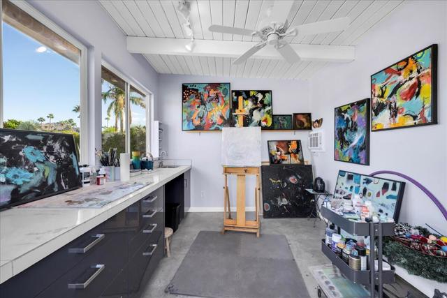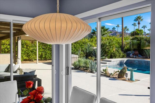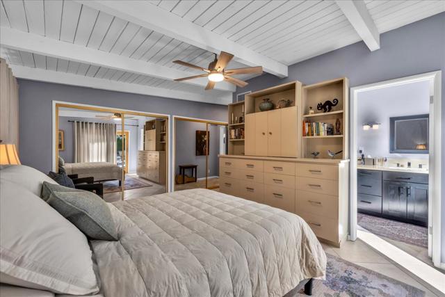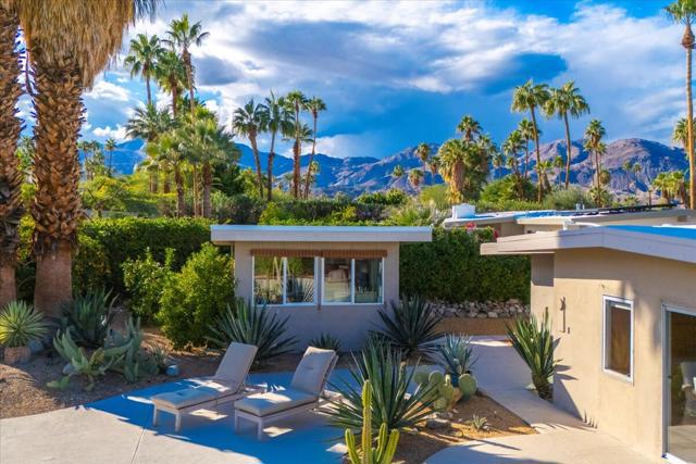 One-of-a-Kind- Dual Primary Suites- Mid Century, renovated, South facing pool home & spa, with detached art studio. Panoramic Mountain Views, with no unsightly power-lines to mar the views. Ideally located, nestled on quiet cul-de-sac in highly sought after Silver Spur Ranch, by Ironwood Park, a 14.83 acre city park. Remodeling includes: newer dual-pane windows; & doors throughout.Tile flooring; upgraded kitchen and bathrooms, pool, decking, outside shower & solar too. Near the Living Desert, and El Paseo shopping district and more. Ultimate privacy and views. Don't wait to view this unique offering.