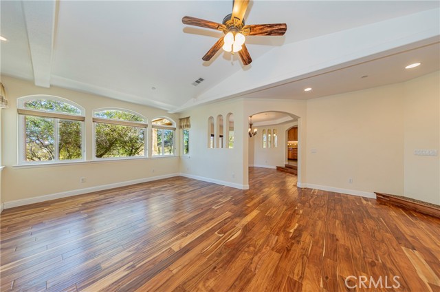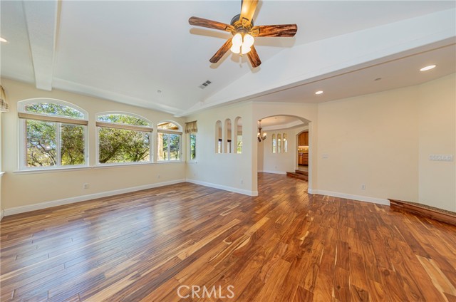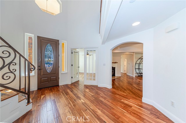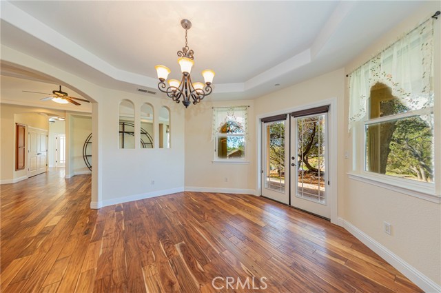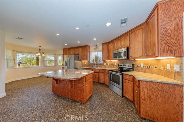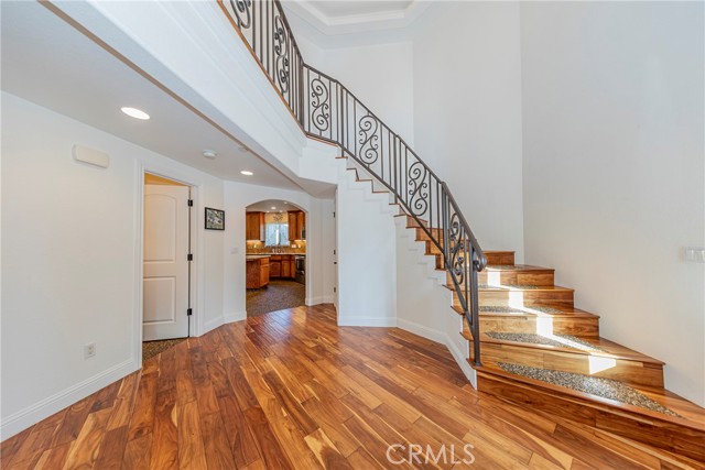 Exquisite Custom Home! A "one of a kind" from top to bottom that is a real showpiece with great thought and care in the design and use of materials throughout. From the gated entry to the grand entry with a circular staircase leading to the primary suite, there is so much to see in this home. Acacia floors throughout with sealed aggregate flooring in the kitchen and baths for easy clean up. A very large gorgeous kitchen with an island for eating or just chatting with friends while you cook those scrumptious meals, makes for a fun time entertaining friends or family. A step-down living room and propane fireplace add an air of comfort with the design, all while having easy access to the formal dining room and kitchen. As you stroll down the hall you will come to the other bedrooms, bathrooms, and the oversized game/family room with plenty of room for a pool table, bar, or dance studio space. Just let your imagination run wild. Be sure to go up to the primary suite and stroll out to the oversized partially covered patio to sit and relax or add a private spa there. The primary bathroom is very spacious and the huge walk-in closet that feels like it just keeps going, will easily accommodate your wardrobe. As you look over this 2.51+/- acre property, you will see the land is all usable, fenced, cross-fenced with chicken coops, storage building, large gazebo on the back side of the home with built-in barbecue and so much more. Tankless water system, wired for generator, security system, built-in wall safe and cameras, not to mention the oversized garage with additional 10x13 workspace that you can set up for hobbies or crafts.