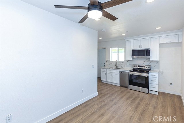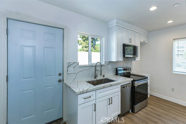 NEW 2022 BUILT single-story 2 bedroom 1 bath ADU custom home in highly rated La Verne School District! Elegant look and feel throughout. Large open concept with white shaker cabinets in the kitchen. The well-equipped gourmet kitchen is highlighted by plenty cabinet space, and stainless steel GE appliances. Other features include recessed lighting, wide plank wood like flooring, double paned windows, central A/C and heating, tankless water heater, and washer/dryer hookups. In the heart of LaVerne, across the street from the downtown village, University of LaVerne College, close to schools, and shopping.