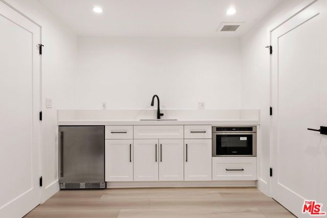 Under a mile from the Pacific, this west-facing front townhome offers approximately 2,300 sq ft of fully rebuilt luxury, featuring 3 bedrooms, 4 bathrooms, and a private driveway with direct access to an attached two-car garage. Inside, a cohesive modern design unites waterproof LVP flooring, white-quartz surfaces, and matte-black accents, enhanced by all-new systems, an upgraded electrical panel, and efficient per-room HVAC cassettes. The entry level includes a private suite with a kitchenette, walk-in closet, and spa-style bath ideal for guests, in-laws, or a separate office setup. The second-floor entertainer's level showcases a dramatic 5'10' quartz island, a 60" Wolf range beneath a custom matte-black hood, Bosch 800 Series appliances, a generous pull-out pantry, and seamless white-on-white quartz backsplash. The sunlit dining and living areas feature a floor-to-ceiling electric fireplace, custom built-ins, and an 83" smart OLED TV. A washer and dryer are also included. On the top floor, two serene primary suites offer designer baths, while the south suite adds a powered office nook, a large walk-in closet, and access to a wrap-around balcony capturing ocean breezes and partial coastal views. Smart-home upgrades include Google/Nest controls, per-room thermostats, smart locks, doorbells and lighting, USB outlets, hard-wired ethernet, in-wall HDMI, and connected appliances. The finished garage provides cabinetry with a quartz worktop, a direct-drive opener with battery backup, and dual EV chargers. MUST SEE!! Showings by appointment only..