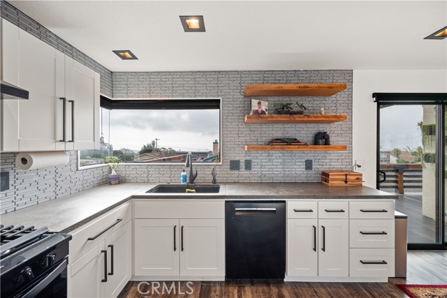 Just moments from the iconic Morro Rock and the shoreline, this impeccably updated 3-bedroom, 3-bath residence blends modern design with thoughtful craftsmanship throughout. Every space has been elevated with high-quality materials, custom finishes, and a seamless indoor outdoor living experience. Step inside to an inviting open layout featuring a fully remodeled kitchen with custom poured concrete countertops, a Bosch smart dishwasher, gas range with an instant-hot filtered water. The living room showcases tongue-and-groove wood accents, a dramatic 92” ceiling fan, integrated low-voltage lighting, and a 15’ full-slide glass panel door that opens to the private outdoor spaces. Each bedroom offers its own character with solid-core doors, custom trim, built-in storage, and designer accent walls. All three bathrooms have been completely reimagined with modern concrete-encased showers, premium fixtures, heated towel racks, smart toilets with touch-less functions, and elevated lighting details. Outside, the property continues to impress with custom black-concrete hardscape, modern planters, imported polished stone landscaping, a rebuilt deck, and a sleek 16’ powder-coated steel spiral staircase leading to the upper spa deck. Enjoy features such as an outdoor hot/cold shower, landscaped atrium, upgraded fencing and decking, and drought-conscious front and rear yard design. Mechanical upgrades include a tankless water heater with recirculating pump, LED lighting throughout, infrared zoning heat system, a new garage door with side-mount opener, upgraded electrical panel with dedicated circuits for wellness equipment, and a fully improved crawlspace with lighting and outlets. Lifestyle amenities such as a cold plunge, outdoor sauna, and hot tub are available. This home delivers exceptional condition, modern style, and a premier coastal location—an outstanding opportunity to experience Morro Bay living at its finest.
