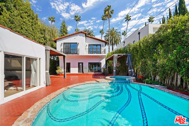 Location Location Location!!! Enjoy the comfort of your new home, in the heart of Beverly Hills! Walking distance from the Four Seasons Hotel, Beverly Hills Triangle, Beverly Center and Robertson Blvd. Hardwood floors are laid throughout the home; which includes a spacious living/ family room, and dining area that opens up to a gourmet Chef's Kitchen. Grand Center Island, granite countertops, and fully equipped with Stainless Steel Appliances. 3 bedrooms upstairs plus 2 full bathrooms. Master bedroom has an oversized walk-in closet/bathroom with balcony views of the pool. An over-sized backyard lets you enjoy the cabana style sitting area, fire place, pool & jacuzzi. Pool-house/den adjacent to pool, would be perfect to turn into either a kids game room, or office. 2 gated parking spaces in the front plus an additional covered garage parking space accessible thru the back alley.