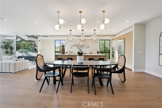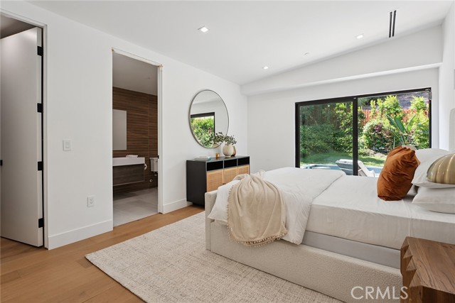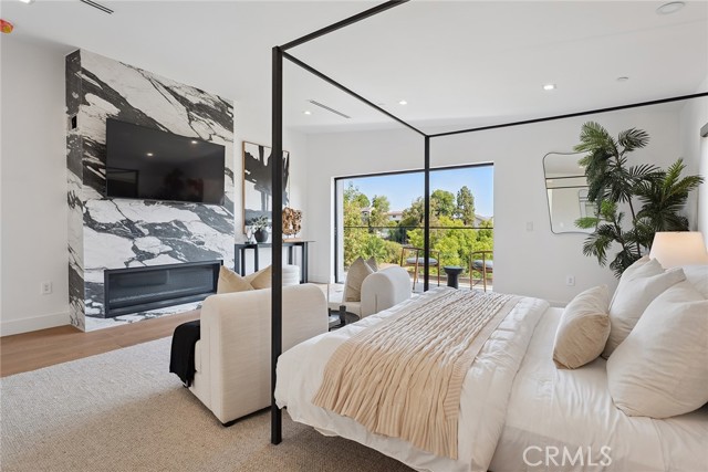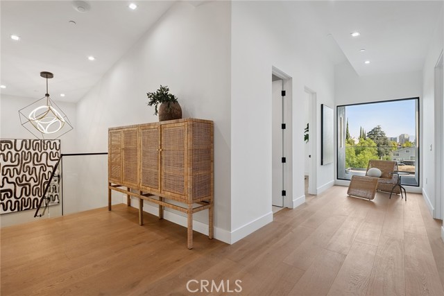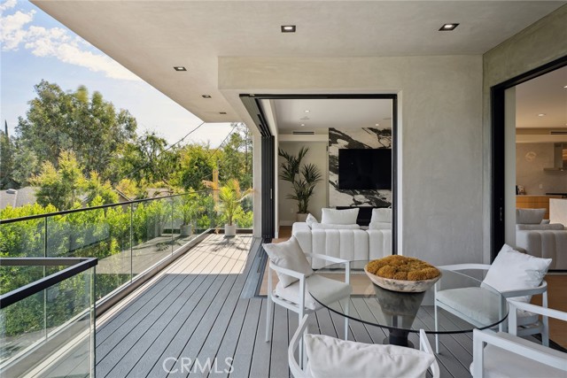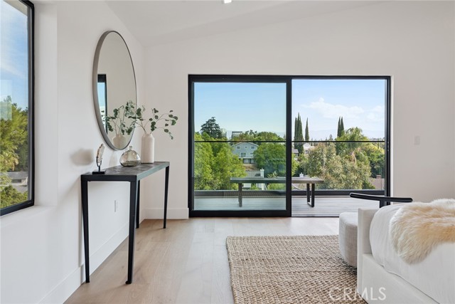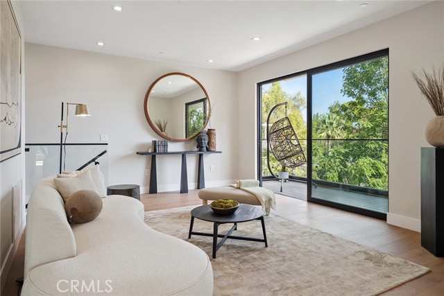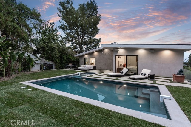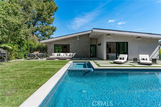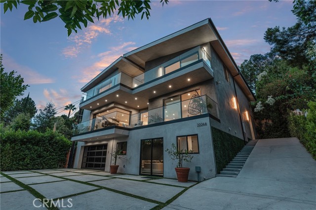 Gated modern estate newly constructed in 2024 with newly built pool & spa located South of the Boulevard with Valley, mountain, & city light views! Privately tucked away and hidden from the street, the property is situated down a long gated driveway with pedestrian access and flanked by tall growth hedging. Oversized parking can accommodate 10 cars plus there is direct access to an extra deep 540 SF 2-car garage. The interiors boast meticulous craftsmanship, designer finishes, and almost every room looks out to gorgeous views. A glass pivot entry door opens to a grand foyer where you’ll find a completely open floor plan filled with natural light from sweeping glass doors that open to the vistas beyond. The chef’s gourmet kitchen boasts massive center island with breakfast bar seating, stainless gourmet appliances, custom soft close cabinetry with quartz counters, separate wine fridge, and great pantry space. The kitchen opens directly to all living spaces including the formal dining room, the spacious family room with stone fireplace, and separate separate den - all rooms highlighted by glass pocket doors & sliders that open to a sprawling wraparound balcony deck with seating area that overlooks the amazing Valley & mountain views. A lower level movie theater has a full bathroom, access to the exterior, and can alternatively be used as a guest suite. Ascend a stunning floating glass and iron staircase to the upper level where you’ll find four well appointed bedrooms including the luxurious primary suite featuring stone fireplace, pocket doors that open to a balcony deck overlooking the gorgeous views, expansive walk-in closet, and sumptuous en-suite bathroom with custom floating vanity with dual sinks, designer tiling, walk-in steam shower with multiple shower heads, soaking tub, and separate toilet room. The three additional bedrooms have walk-in closets and access to their own bathrooms. Two of the rooms have large sliders that open to the backyard and the other opens to a large balcony deck overlooking the views. The resort styled backyard features brand new 2025 built pool and spa, large wraparound patio for lounging and outdoor dining, BBQ center, and grass lawns with lush landscaping. Desirably located adjacent to dining & shopping at the Calabasas Commons, Topanga Canyon shops/eateries, Westfield Topanga Mall/Village, Warner Center, hiking trails & minutes to Malibu.