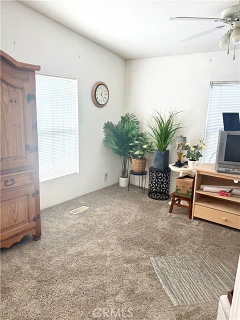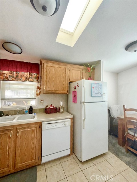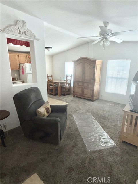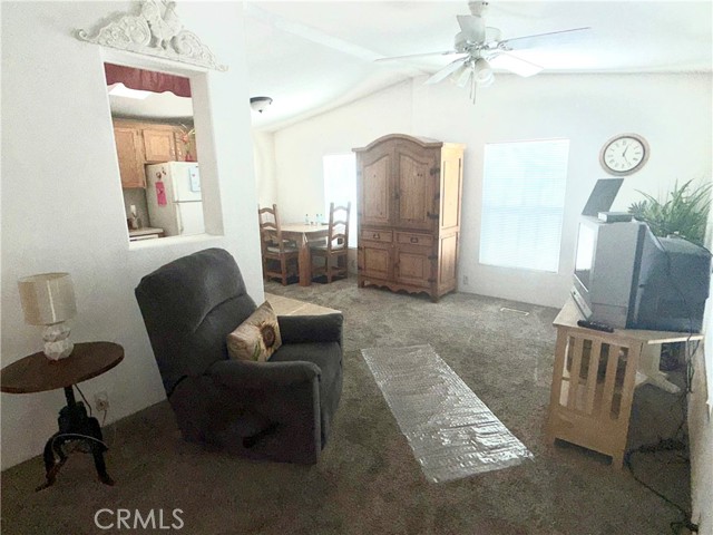 Bright and welcoming home featuring an open living and dining area with abundant natural light. Spacious kitchen offers plenty of cabinet space and tile flooring. Charming exterior with shutters and greenery. A comfortable, move-in-ready space in a great park!