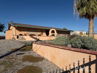 What kind of lifestyle are you looking for? Serenity? Spectacular scenic views? Vast, vibrant skies painted with color? Magnificent sunsets? A home built for sustainability, cost-effectiveness, and meticulous craftsmanship in both functionality and style? How about being just minutes from launching your boat for an afternoon cruise? Welcome Home. This charming Spanish-style residence offers 3 bedrooms, 2 baths, a 600 sq. ft. bonus room (16’ x 20’), dining room, great room, kitchen, laundry room, home office, a 2-car garage, and a workshop—all spread out over ¾ of an acre. Authentic Spanish tile flooring flows throughout, complemented by open-beam ceilings, colorful porcelain sinks, new RO systems at the sinks, new toilets with bidets, and an AC system with a new motor and condenser. The thoughtful floor plan highlights the tranquility and beauty of desert living. Barn-Style Workshop: A true standout feature—this 30’ x 43’ (1,200 sq. ft.) two-story garage/workshop offers massive space for storage, projects, vehicles, or hobbies. An attached 2-car garage with a new ultra-quiet automatic roll-up door adds convenience and easy access to the home. There’s plenty of room for toys, collectibles, tools, and more. Water Systems Upgraded: A 1-year-new Ground Pounder (a $5K installed value) acts as a state-of-the-art water softener, purifier, and odor reducer—improving taste and quality throughout the home. A new RO system was added to the kitchen sink for enhanced drinking and cooking water. The Kitchen: The charming kitchen opens to the dining room and includes: • Whirlpool stainless steel side-by-side refrigerator • Clean electric glass cooktop • New RO reverse osmosis system (2025) • New disposal • Rheem water heater Outdoor Living: The yard is fully fenced with wrought-iron security gates and offers miles of breathtaking desert views—a peaceful retreat from everyday life. This is where stunning scenery meets smart living. Don't miss your chance to make it yours - book your tour today!