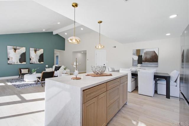 Bright and beautifully updated — this single-story home offers 3 bedrooms and 2 bathrooms across approximately 1,625 sq ft of living space, set on a generous corner lot. Step inside to discover a welcoming living room with vaulted ceilings and a cozy fireplace, flowing into a modern kitchen where stainless-steel appliances meet quartz countertops and contemporary finishes — an ideal blend of style and function. The interior showcases plank-style flooring throughout and designer touches in each bathroom, including lighted soap niches and upgraded fixtures. Outside, a spacious backyard awaits: enjoy a versatile office / “man-cave / she-shed” — perfect as a private studio, workshop, or retreat — plus ample RV parking on a concrete pad with room for a boat or RV. Whether you’re relaxing indoors, hosting friends and family, or storing all your gear with ease, this home combines comfort, convenience, and thoughtful design in a warm Oceanside neighborhood.