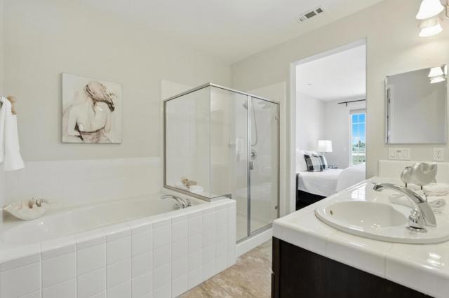 One Marina community in Redwood City. 2 bedrooms 2.5 baths, wood floors, inside laundry, attached 2 car garage. AC, water views. Stairs from foyer then living space all on one level.