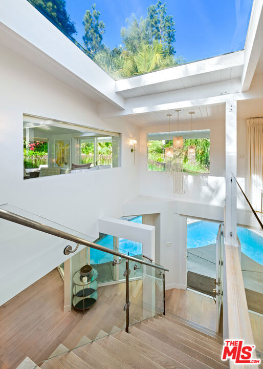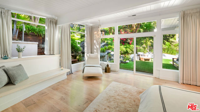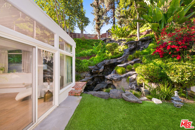 Fantastic Contemporary Oasis and former of several A-List celebrities. Nestled in a small cul de sac just 2.5 minutes behind The Beverly Hills Hotel, close to Sunset Blvd. This home has an wonderful "vibe", featuring an open floor-plan with excellent indoor/ outdoor flow. An abundance of natural light fills the home, including 9 sky-lights, and 3 oversized fireplaces. Large sumptuous Primary Suite w/ spa like bathroom, and 2nd bedroom both feature walls of glass which open out to a dramatic 50 ft. Waterfall, pond, lush yard & Fire Pit with hilltop yoga area and hammock. Updated newer Kitchen w/ porcelain counters, custom cabinetry, & top of the line MIELE appliances. Spacious, light-filled living & dining area set atop the trees. Downstairs features a private 3rd bedroom w/ separate gated entrance and garden, perfect for guests, teenager, office or live-in. Media Den with bar and fabulous sunken "conversation pit" around a fireplace, perfect for movie nights or gatherings. Heated pool with new equipment glows from every room at night. Private and Tranquil with only 2 homes on street and ample parking rarely found in the hills. Private, walled and gated entry, ready to move in! Recent 5 year rental average has been $20,150, so a great deal now. This contemporary gem is an incomparable property and rare offering. Open to 1 year, 6 months or negotiable. Can be furnished or non. Most furnishings are brand new and of great quality and style rarely found in a lease. Available immediately and ready to move in.