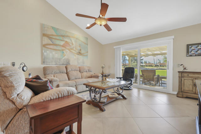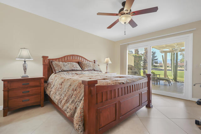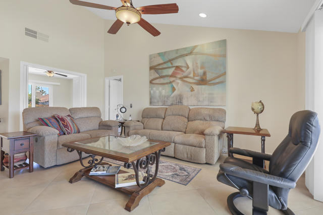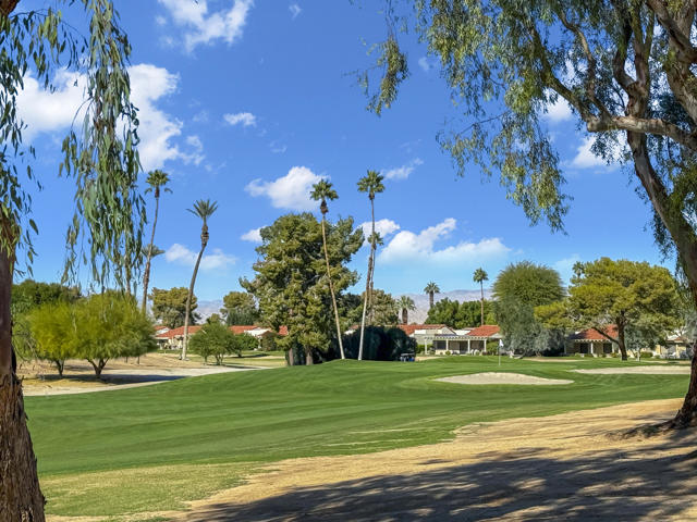 Discover resort-style living in this highly sought-after St. Andrew floor plan--one of the best layouts in the Palm Desert Resorter. The spacious 2bedroom, 2bath home includes a versatile den that can serve as a comfortable third bedroom, home office, or media space. A barn door closes off the secondary suite, for added privacy and flexibility. Perfectly positioned on the 13th fairway, the sweeping southwest-views of the golf course and surrounding mountains, deliver beautiful sunsets and a serene indoor-outdoor atmosphere. Skylights and ceiling fans enhance natural light and comfort throughout the home. Inside, a remodeled kitchen features quartz countertops, stainless steel appliances, and ample storage. A separate dining area is an ideal space for entertaining, while tile flooring throughout adds style and easy maintenance. Expansive commercial-grade windows frame the stunning scenery. Step outside onto the tiled, extended rear patio complete with an awning, built-in BBQ, and desertscape border, perfect for enjoying the desert lifestyle year-round. A two-car garage with built-in cabinets and a workbench offers excellent storage and functionality.Located in the Palm Desert Country Club, residents enjoy access to an 18-hole championship golf course, 20 pools and spas, clubhouse, pickleball, bocce ball, and tennis. This exceptional home is offered furnished, making it move-in ready for seasonal or full-time residency. Short term rentals are allowed.
