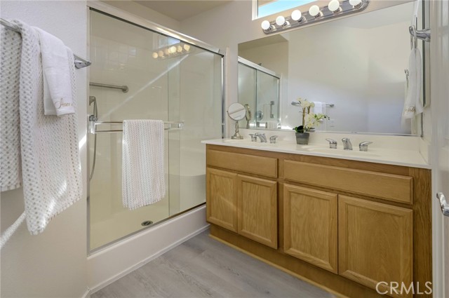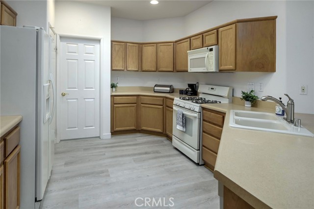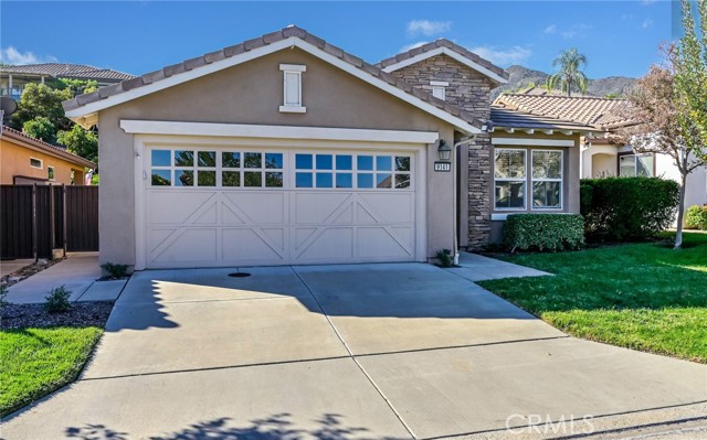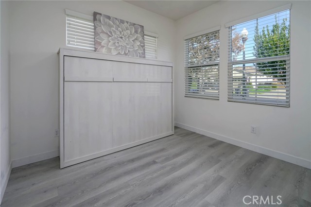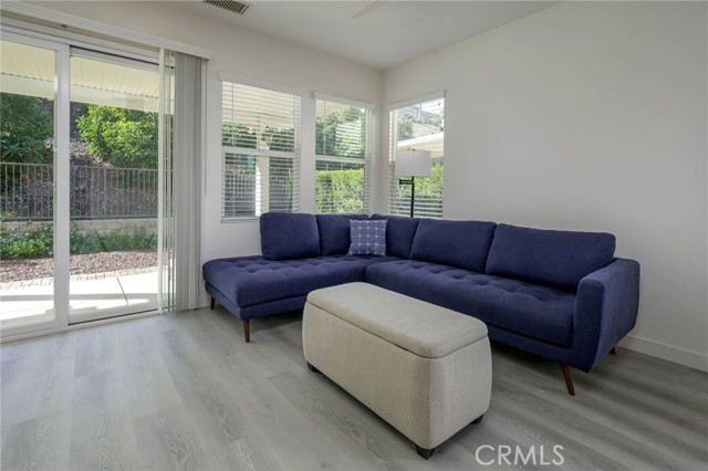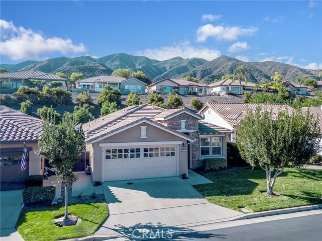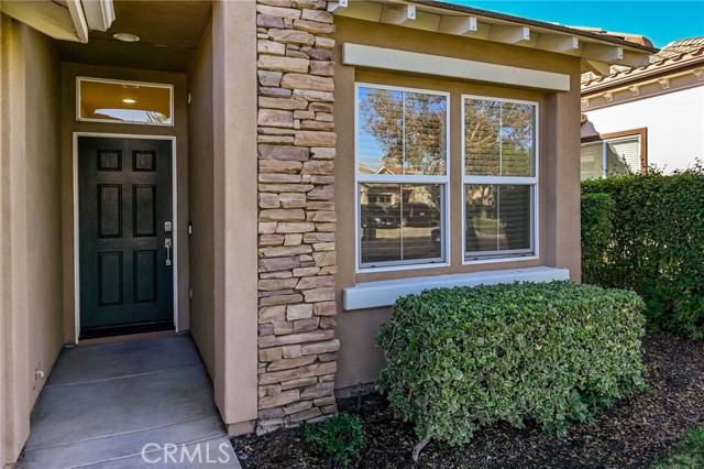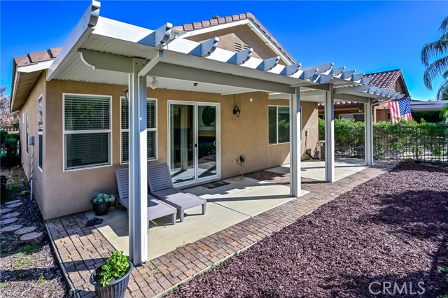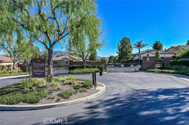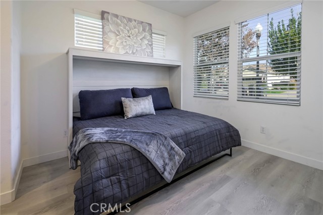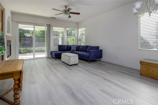 Nestled in the prestigious Trilogy at Glen Ivy, a gated 55+ active senior community, this stunning single-story home boasts beautiful stacked stone details and offers 2 bedrooms and 2 bathrooms within its 1,290 square feet of living space. Situated on a tranquil cul-de-sac, this residence perfectly blends comfort, functionality, and style. As you enter, you'll be greeted by high ceilings and a flood of natural light that creates a warm and inviting ambiance. The home features neutral-toned paint and brand new luxury vinyl flooring throughout every room. The spacious kitchen is complete with a breakfast bar, ample counter space, a gas range, microwave, dishwasher, and a pantry with built-in shelving. The two generously sized bedrooms include a primary suite with a walk-in closet, dual sinks, and a beautifully appointed bathroom with a walk in shower. The second bedroom offers direct access to the other bathroom and includes a convenient built-in Murphy bed for flexibility. Every room is equipped with dual-pane windows and newer blinds for added comfort, while recessed lighting and ceiling fans enhance the elegance of key spaces. The inside laundry room, conveniently located off the kitchen and garage, includes built-in shelving for additional storage. The two-car garage features even more built-in shelving, making organization a breeze. Step into the private easy to maintain backyard, where a covered patio awaits—perfect for relaxing or entertaining guests. As a resident of the exclusive Trilogy community, you'll enjoy access to resort-style amenities. These include an expansive 13,000 sq. ft. clubhouse, outdoor and indoor swimming pools, a state-of-the-art fitness center, an indoor walking track, tennis and pickleball courts, bocce ball, BBQ areas, and a variety of clubs and social activities. This is more than just a home; it’s a vibrant lifestyle. Welcome to your dream home and community, conveniently located near the Glen Ivy Golf Course, spa, great shopping, dining, and freeways.