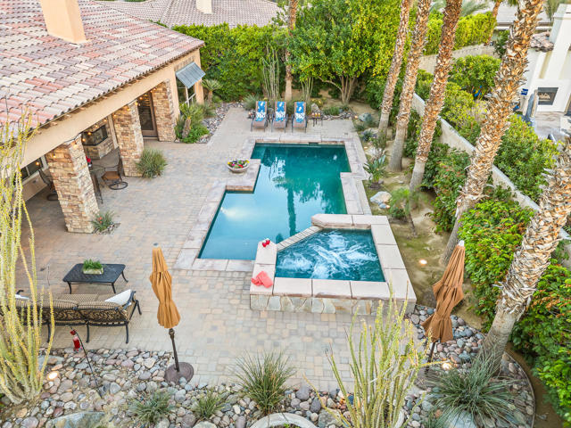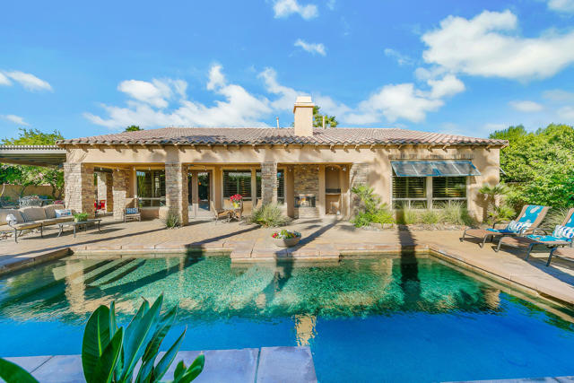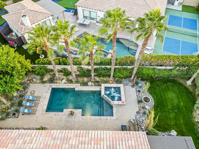 Positioned in the highly coveted, STR-approved enclave of Montage Santa Rosa, this Tuscan-inspired luxury residence offers exceptional scale, flexibility, and powerful income potential--making it a rare opportunity for investors seeking a high-performing asset in one of the valley's most desirable communities.Set on an expansive lot with a south-facing backyard, this property is perfectly aligned for all-day sun, lounging, swimming, and year-round enjoyment. The generous side yard provides ample room for a future pickleball court, while the tandem garage offers additional storage or potential conversion space--ideal for investors looking to maximize returns with strategic enhancements.Inside, the great room creates a striking first impression with a custom stone fireplace, granite wet bar, and seamless indoor-outdoor living that elevates rental appeal. The chef's kitchen features dual oversized granite islands, stainless steel appliances, a glass-door pantry, and custom lighting, flowing effortlessly into the dining area and backyard. A media room off the entry adds versatility for guest accommodations or entertainment, while three private bedroom suites plus a den offer excellent flexibility--easily adaptable into a potential five-bedroom layout to boost revenue potential.The primary suite offers a private retreat with custom built-ins, a walk-in closet, and direct access to the pool and spa. Designer details such as crown molding and custom paint enhance the home's character and provide a refined backdrop for future upgrades.The outdoor living experience is a true standout. A wraparound loggia, outdoor kitchen, Alluma-wood covered patio, and perfectly positioned pavers create a resort-style setting designed for entertaining and optimized for high-demand STR bookings. The sparkling pool, spa, and multiple lounging areas make this backyard an oasis with room to elevate even further.For investors seeking investment with community, STR approval, strong demand, and significant upside through thoughtful improvements, Montage Santa Rosa remains unmatched--and opportunities with this level of potential are increasingly rare.
