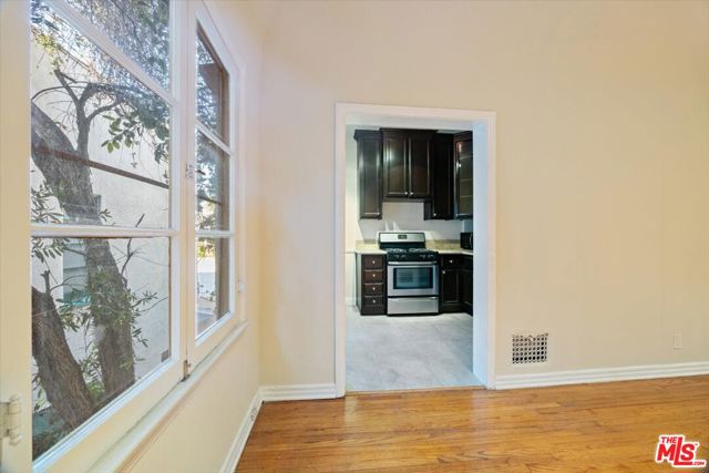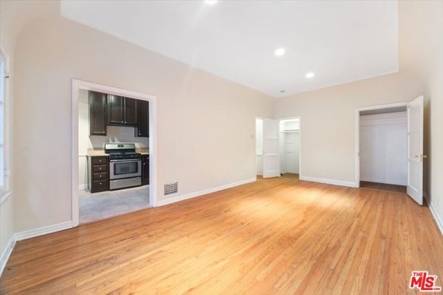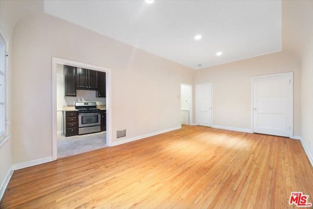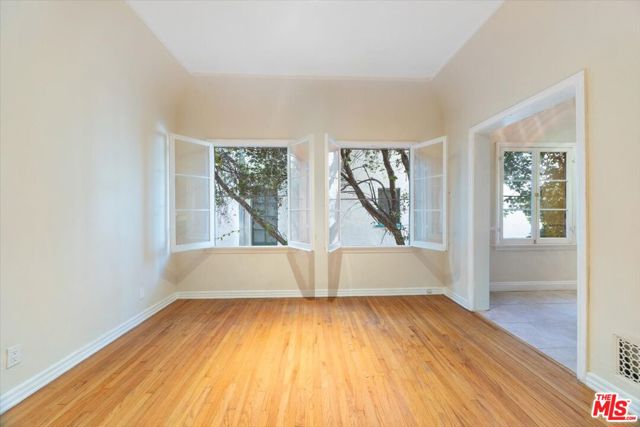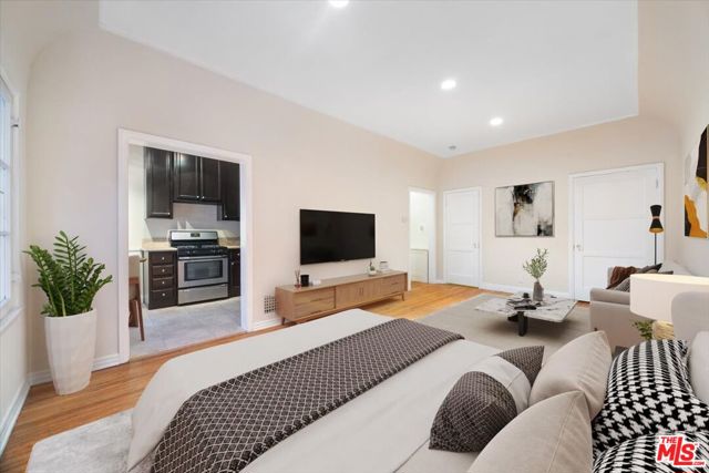 Experience the charm of this spacious second-floor, one-bathroom studio unit in a beautiful 1930s building. Featuring French windows, an Art Deco living space with a concave ceiling and hardwood floors, this home blends classic elegance with modern convenience. The updated kitchen and bathroom feel spacious for a studio unit. Located just a block north of Wilshire/Crescent Heights, you'll be close to The Grove, 3rd Street shops and restaurants, LACMA, the Farmer's Market, and the La Brea Tar Pits. Additional amenities include street permit parking, on-site laundry, and a secure entry/intercom system. Water included.
