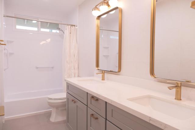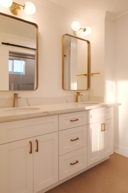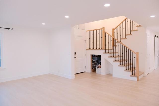 Welcome to this beautifully updated home featuring hardwood flooring, a fully remodeled kitchen, and renovated bathrooms designed with style and comfort in mind. The layout offers exceptional functionality, including a separate family room, formal dining room, and a finished secret bonus area adjacent to the primary suite perfect for a private home office, yoga or reading lounge. The spacious kitchen is equipped with two ovens, a French-door refrigerator, a kitchen island, and ample storage. The fully finished garage includes epoxy flooring and additional storage solutions, providing a clean and organized space for parking or hobbies. The low-maintenance, hardscaped backyard is ideal for outdoor dining and relaxation. Additional conveniences include in-unit laundry, central AC, double vanities in both en-suite bathroom & hall bathroom, and easy freeway access.