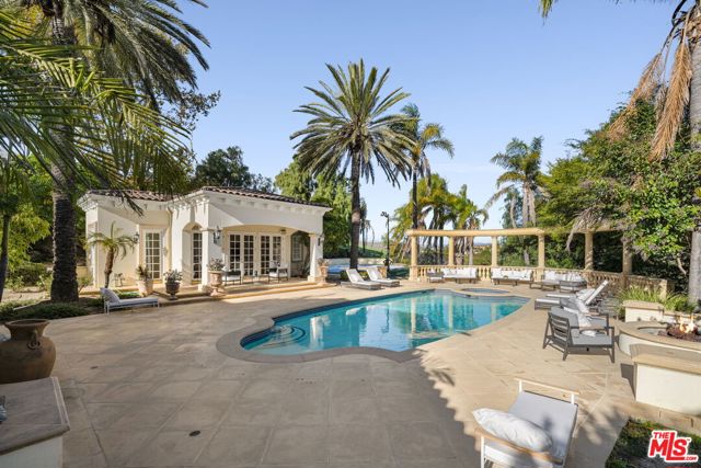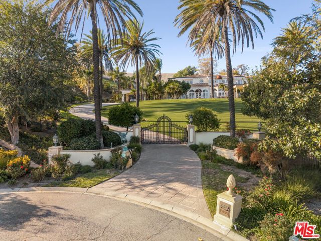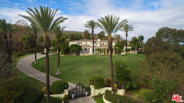 Welcome to a spectacular, privately gated North Ranch Mediterranean estate, newly refreshed and set high above street level at the end of a premier cul-de-sac. Spanning more than 9 picturesque hilltop acres, this extraordinary property delivers sweeping panoramic views, unmatched privacy, and an unforgettable sense of arrival. The grand two-story residence showcases an open, light-filled floor plan with expansive rooms and elevated finishes throughout. Designed for both luxury living and effortless entertaining, the home features 7 bedrooms and 6 baths, a custom professional theater, an elegant office/library, a dramatic family room with bar and billiards, and a fully equipped gym. The newly enhanced backyard is a true resort-inspired retreat, offering a custom pool and spa, pool house/casita, lighted basketball court, fire pit, and outdoor barbecue pavilion--all framed by breathtaking vistas.A four-car garage plus generous driveway parking provide ample space for residents and guests. Located within the award-winning Westlake Hills Elementary, Colina Middle, and Westlake High School district, this estate embodies an exceptional lifestyle. A rare opportunity to experience this North Ranch masterpiece--introduced, refined, and better than ever.