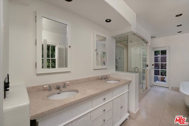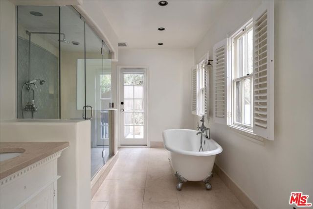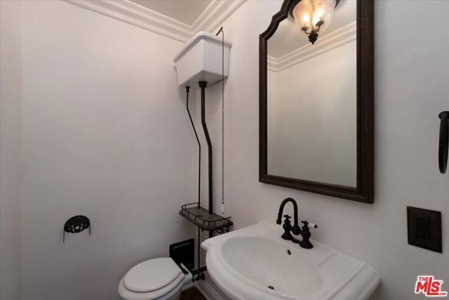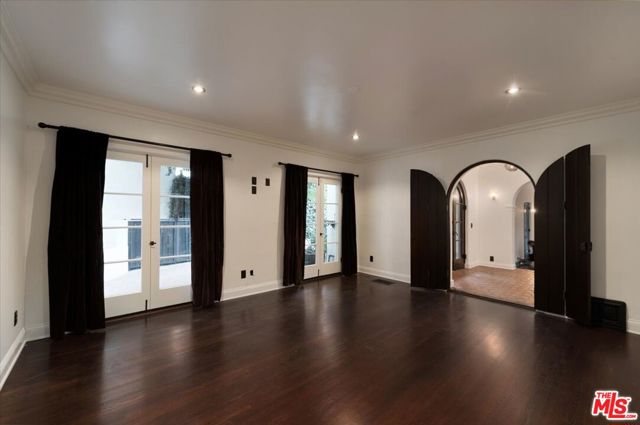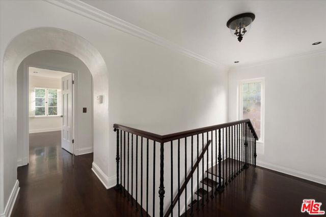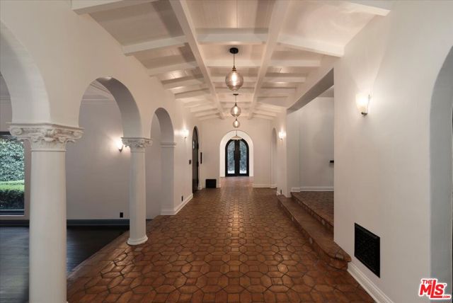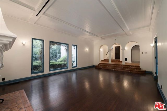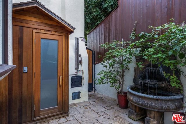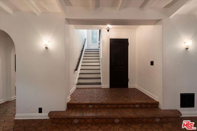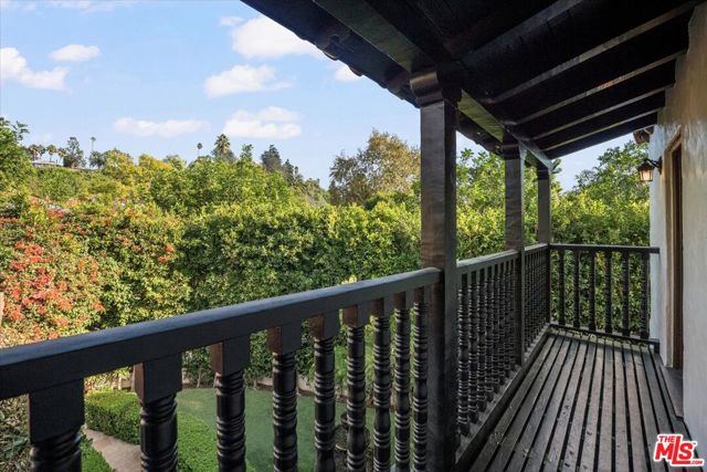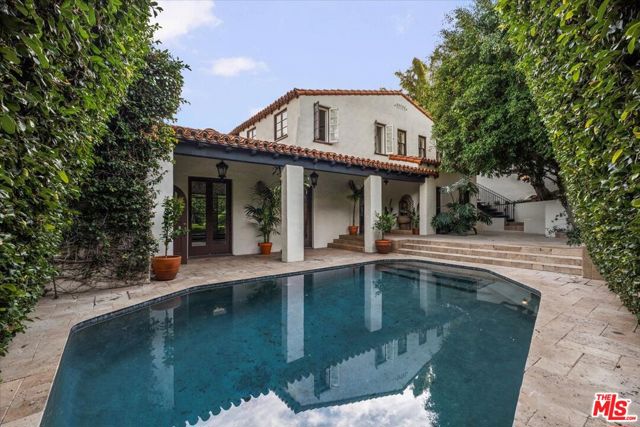 Experience elevated living in the prestigious Outpost Estates. This stunning modern Spanish-style residence seamlessly blends contemporary sophistication with classic Hollywood allure, showcasing vaulted wood-beamed ceilings, beautiful original windows, and refined crown moldings. Three timeless arches lead to a dramatic step-down living room that opens to an ultra-private backyard sanctuary appointed with a black-bottom pool, outdoor sauna, covered loggia, and wonderful spaces designed for effortless indoor-outdoor entertaining. The gourmet chef's kitchen is outfitted with sleek natural stone countertops and top-of-the-line stainless steel Thermador appliances, offering both beauty and performance. The kitchen is open to an ample sized dining room with garden views. Upstairs you'll find four generously sized bedrooms and three impeccably designed bathrooms, highlighted by a luxurious primary suite boasting a spa-caliber bath with a claw-foot soaking tub, rainfall shower, and dual vanities. Additional premium amenities include a temperature-controlled wine cellar and dual-zone HVAC. This exceptional residence embodies style, comfort, and the best of Los Angeles living. Perfectly situated with convenient access to the trails of Runyon Canyon and all the surrounding communities have to offer.