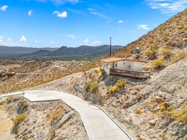 Extremely unique property with limitless possibilities! Welcome to 71105 Cholla Way in South Palm Desert in Cahuilla Hills. This is one of the highest if not thee highest property in all of Palm Desert. This is a 5 acre parcel with a fully remodeled large Cabin, incredible views, 100 yard concrete driveway with all the improvements completed to build a one of a kind custom home on a flat pad at the end of the concrete driveway. All grading work has been completed, new owner can submit plans and begin building. Water & Electric onsite. Call for your private tour!