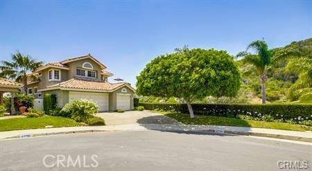 Welcome to this spectacular former model home, perfectly situated on a desirable cul-de-sac in the prestigious Niguel Summit community. This light and bright, two-story residence boasts four spacious bedrooms and four full bathrooms, offering an exceptional open-concept floor plan designed for sophisticated entertaining and comfortable family living. Step inside to experience the grandeur of soaring two-story vaulted ceilings, skylights, and large windows with plantation shutters that bathe the home in natural light while framing gorgeous views. The main level features formal living and dining rooms anchored by an elegant two-sided fireplace, plus a spacious family room with rich wood flooring. The remodeled kitchen is a chef’s dream, featuring a convenient island, stunning white cabinets, granite countertops, and stainless steel appliances including a gas range and microwave oven. A valuable main-floor bedroom with custom office built-ins and a full bathroom provides ideal flexibility for guests or a dedicated workspace. The second floor is a private retreat. Master suite is a true sanctuary, featuring a huge bedroom and a private balcony with spectacular panoramic city and mountain views—perfect for enjoying morning coffee or evening lights—alongside a luxurious bath with a separate tub and shower. Two additional bedrooms upstairs, each benefiting from their own private full bath, complete the second level. The quality of this top builder's home is evident throughout, offering tons of storage space and a whole-house water filtration system for your comfort. Outside, the private, park-like backyard is a serene oasis, showcasing a beautiful in-ground pool and mature citrus and shade trees. With a 2-car and separate 1-car garage, this exceptional property encompasses all you have been looking for. This is a must-see for the discerning buyer seeking a comfortable lifestyle and premier location!