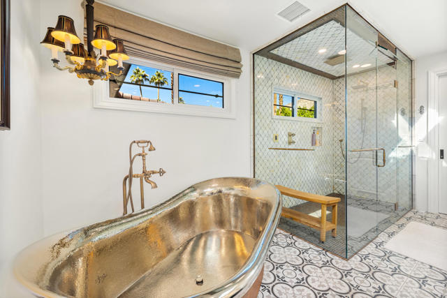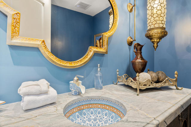 Casa Suenos - An Architectural Masterpiece in South Palm Springs. Tucked away in the exclusive enclave of Andreas Hills, Casa Suenos is a private sanctuary where timeless elegance meets elevated design. Surrounded by mountains, the estate is bathed in sunshine, sheltered from the wind, and framed by awe-inspiring 360 views. This remarkable location offers the ultimate setting for enjoying the Palm Springs lifestyle, just moments from world-class hiking, premier golf, and vibrant downtown dining and shopping. Reimagined and completely rebuilt just three years ago, this 5,417 sq. ft. custom estate is a meticulously curated Spanish Colonial masterpiece infused with romantic Moroccan and French influences. Every finish, texture, and detail has been intentionally selected to create a cohesive vision of escape, romance, and refined beauty. Designed as your own personal resort, the property features a sparkling pool with cascading waterfall, tranquil fountains, citrus gardens, and multiple lounge areas set against dramatic mountain vistas. Pocketing sliding doors create seamless indoor-outdoor living, opening to a spectacular front-loaded pool and spa, a Spanish-tiled outdoor fireplace, a fully equipped al fresco kitchen, and a raised patio that captures what may be the most breathtaking mountain views in the entire Coachella Valley. The estate offers 4 luxurious en suite bedrooms plus a fully appointed detached casita with its own kitchen, living room, and laundry, perfect for extended family, guests, or private retreats. Grand living spaces are anchored by soaring vaulted wood-beamed ceilings, artisan tilework, bespoke cabinetry, and a handcrafted dark wood tequila bar--hallmarks of true craftsmanship. Blending elegance with comfort, the primary suite offers a romantic escape infused with warmth and style, complete with a spa-like bath, dual walk-in closets, and a private office for quiet retreat or stylish remote work. Each guest suite has been thoughtfully designed with en suite baths and elevated finishes to welcome visitors with the most refined taste. Casa Suenos is more than a residence, it's a timeless expression of romance and elegance, seamlessly intertwined with the sophistication of Palm Springs living. Welcome home to Casa Suenos.