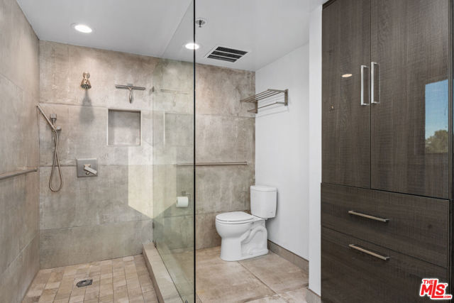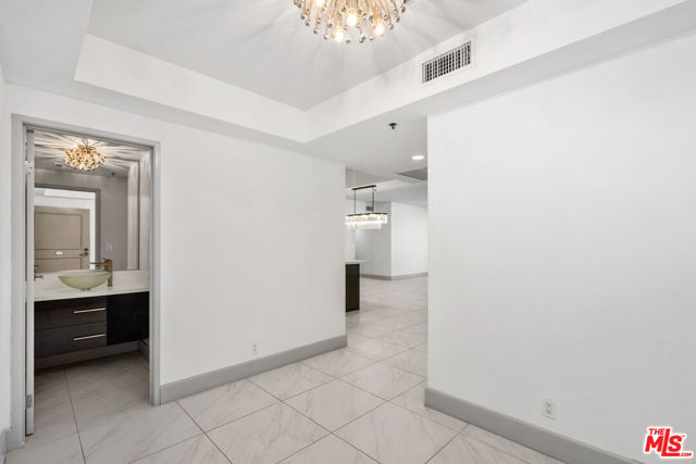 Exceptional Leasing Opportunity!!! Discover a sleek and chic, meticulously remodeled 2 bedroom, 2.5 bathroom condominium located in the Wilshire Manning, a full-service high-rise on the Wilshire Corridor. The residence features a formal entry leading into light-filled spacious living and dining areas. White porcelain floor tiles extend throughout the main living spaces, creating a bright and airy atmosphere. Floor-to-ceiling double sliding glass doors enhance natural light and showcase picturesque city and mountain views, while built-in custom cabinetry equipped with a wine fridge adds both style and functionality. The open-concept kitchen is outfitted with top-of-the-line Viking appliances and stylish, high-end cabinetry. A sizeable quartzite central island serves as the focal point, ideal for effortless entertaining and culinary creativity. The spacious primary bedroom features elegant wood flooring, double layered windows for shielding sound, and a large walk-in closet. The spa-inspired primary bathroom showcases a walk-in shower, concrete walls, and a double vanity, all embodying a clean, modern aesthetic. The secondary ensuite bedroom also features wood flooring, double layered window, a walk-in closet and a full bath, ensuring comfort and privacy for guests or family. A side-by-side washer and dryer are conveniently situated in the hallway, away from the kitchen for optimal functionality. Residence includes two separate parking spaces, with one equipped with its own EV charger for electric vehicles. Building amenities include 24-hour security and valet parking, an elegant lobby, fitness center, pool, and a conference room for residents. This home is move-in ready and offers a neutral palette, making it easy to personalize and create an ideal environment. Building is conveniently located close to 405 freeway, UCLA, Westwood, Century City and Beverly Hills...moments away from best shopping, dining and entertaining destinations.