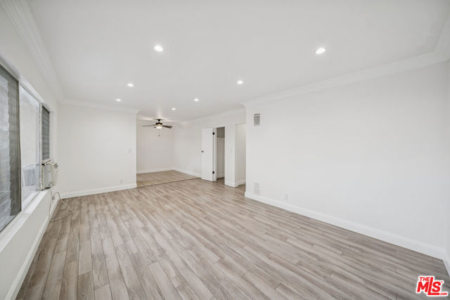 This lower-level residence in West Hollywood offers a modern and inviting living environment with approximately stated features and an open layout designed to maximize natural light and comfort. Nearly floor-to-ceiling windows illuminate the hardwood flooring throughout, creating a bright and cohesive flow across the living and dining areas. The kitchen features hardwood cabinetry and stainless steel appliances, providing a clean and functional space for everyday use. The bathroom includes updated cabinetry and lighting, contributing to the home's contemporary aesthetic. Ample closet space enhances practicality, while the gated building offers additional features such as a community pool, on-site laundry facilities, and included garage parking. Pets are permitted per building policy, the tenant pays gas, electricity, and trash, and the owner provides water and landscaping. Available for immediate occupancy. All information is approximate and should be independently verified.