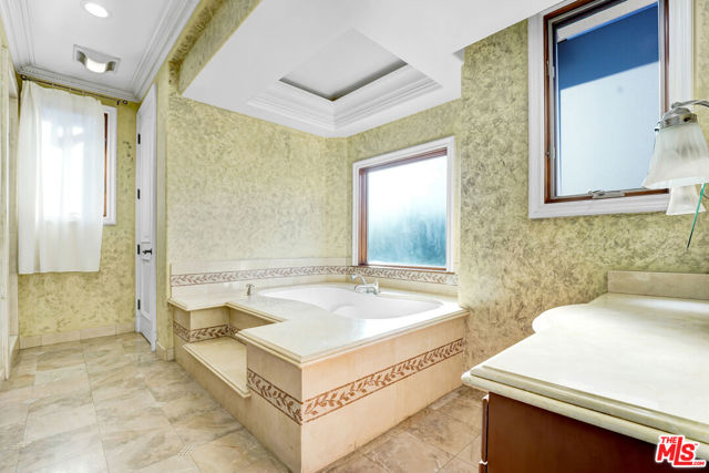 Architectural Mediterranean Villa with 2-levels of exquisite living & entertaining areas in desirable Beverly Hills. The gated villa features a great for entertaining open floor plan with living & dining areas, family rooms with fireplace, grand chef's kitchen with high end appliances, large center island with breakfast bar and a separate breakfast nook all with access to the stunning backyard. Step outside to a sparkling swimming pool, a spacious patio with a shaded pergola, and beautifully landscape greenery that creates a private oasis, perfect for lounging or hosing gatherings. Also, the main floor features a bedroom suite and a separate library/office and a guest's powder room. The second floor features 4 bedroom suites, including a master suite with dual walk-in closets and dual luxurious bathrooms and a side by side washer and dryer with cabinetry. Prime location of Beverly Hills close to La Cienega Tennis Center with 16 courts and La Cienega Park and all the top restaurants and most famous shopping streets. Enjoy the Beverly Hills Lifestyle!