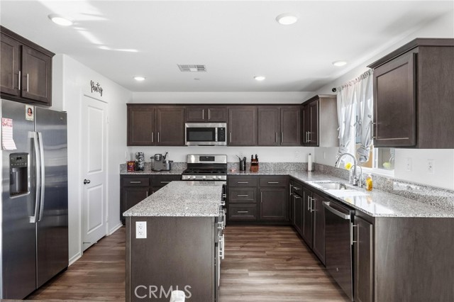 Welcome to this stunning two-story home located in one of Banning’s most desirable newer communities. This beautifully maintained property features 4 bedrooms, 3 full bathrooms, and an inviting open-concept layout designed for comfortable, modern living. The kitchen offers granite countertops, an island, stainless steel appliances, and plenty cabinet space—perfect for everyday cooking and gathering. The downstairs bedroom and full bathroom provide a great option for guests or multi-generational living. Upstairs, the spacious primary suite boasts TWO walk-in closets, a dual-sink vanity, and a large walk-in shower. The additional bedrooms are bright and generously sized, and the loft adds flexible space ideal for an office, study area, or playroom. Step outside to a fully landscaped backyard featuring a custom putting green, creating the perfect setting for relaxing or entertaining. Additional highlights include a water softener system, security camera system, well-maintained front yard, and an attached 2-car garage.