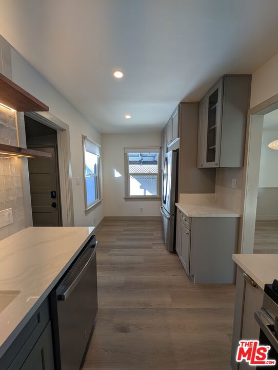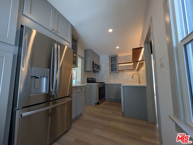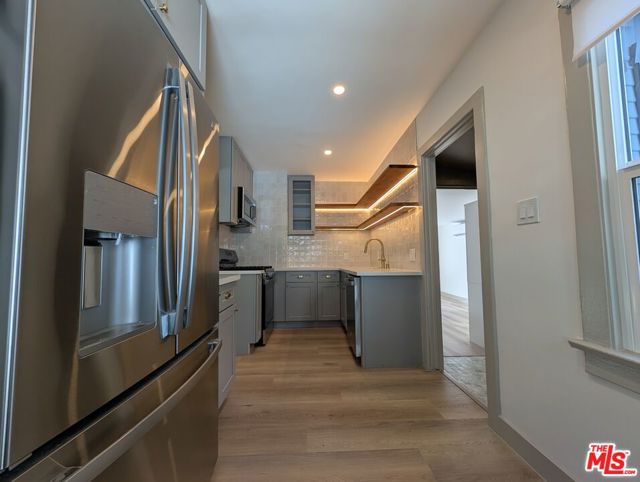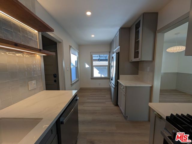 Luxury Brentwood Bungalow! Pet Lovers Retreat! Fully Renovated * Gated * Designer Finishes * Private Indoor & Outdoor Living. Experience refined living in this exceptionally renovated 1 bedroom, 1 bathroom luxury bungalow located in one of Brentwood's most desirable residential pockets. Blending timeless charm with modern elegance, this standalone home offers complete privacy, premium craftsmanship, and rare outdoor space including a large outdoor deck area perfect for outdoor al fresco dining adorn with string lights an elevated lifestyle that is nearly impossible to find at this size and price point. Luxury Interior Features*Newly renovated with meticulous designer-selected finishes*Custom gourmet kitchen featuring Calacatta almond quartz countertops, Zellige-style backsplash tile, soft-close cabinetry with pull outs, brass hardware*Brand new stainless-steel appliances including a French door refrigerator, oven with gas range, dishwasher and over the range microwave.*Sophisticated living and dining area with wide-plank hardwood like flooring, custom wainscoting, recessed lighting throughout and abundant natural light*Spa-inspired bathroom with a walk-in tiled shower, brass fixtures and a sculptural vanity*Stainless steel full size washer & dryer in laundry room with pantry closet*New smart Wi-Fi connected ductless AC/Heat mini split units for quiet and efficient climate control. EV charging next to garage. Exceptional Outdoor & Bonus Spaces*Fully gated property with an automatic private driveway gate*Detached garage with AC/Heat, epoxy floors and recessed lighting. Ideal for a home gym, creative studio, office, guest retreat or covered parking.*Expansive, beautifully enclosed private yard, perfect for small and large pets, outdoor entertaining, lounging or creating your own luxury garden sanctuary*Seamless indoor-outdoor flow ideal for modern California livingSmart Home Features - allows for mobile app and voice controls connected via Alexa or Google Assistant*Smart Wi-Fi dimmers throughout the home. Schedule lights to turn on and off automatically*Smart Wi-Fi Schlage locks on front pedestrian gate, front door and backdoor. Give your housekeeper, dogwalker, family & friends access without you needing to be home!*Smart Wi-Fi enabled AC & heat units. Set your perfect temperature for year round comfort! Prime Brentwood Location Nestled just moments from San Vicente's premier dining, boutiques, cafes, Whole Foods, and world-class amenities yet tucked away on a quiet residential street for ultimate tranquility. This is more than a home, it's a private Brentwood retreat crafted for those who appreciate quality, privacy, and elevated outdoor indoor living.