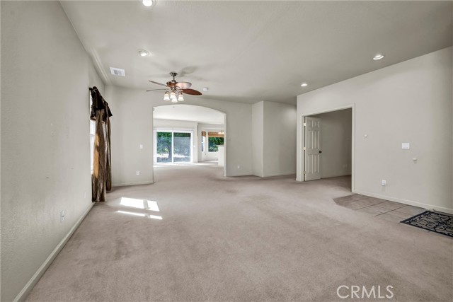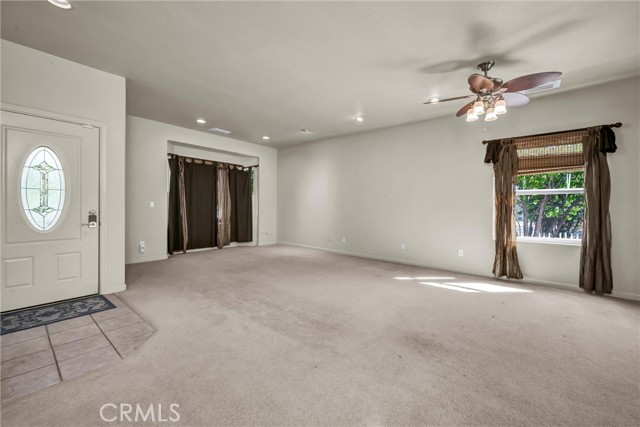 Situated on an impressive corner lot, this expansive single-level home offers a rare blend of comfort and convenience, featuring four spacious bedrooms and no interior stairs. The beautifully landscaped front yard welcomes you, while a three-car garage and an additional circular driveway provide ample parking. Step inside to a generous living room and formal dining area, both enhanced by soaring 9-foot ceilings. A separate family room with a cozy gas fireplace creates the perfect space for relaxing or entertaining. The oversized, upgraded kitchen is a chef’s dream, boasting granite tile countertops, a large island with breakfast bar, rich maple cabinetry, premium stainless steel appliances, and a sunny dining nook overlooking the fenced backyard and scenic golf course views. Retreat to the primary suite, where a charming bay window frames tranquil vistas. The luxurious primary bath features dual vanities, a stall shower, linen closet, soaking tub, and a private water closet. Three additional bedrooms and a second full bathroom offer plenty of space. Enjoy outdoor living in the flat, fenced backyard—ideal for summer barbecues, gardening, or simply soaking up the sunshine. The secondary circular driveway ensures extra parking for visitors or recreational vehicles. This upgraded home also offers an optional “SMART” control panel, allowing you to manage the thermostat, individual room temperatures, window blinds, lighting, and more—all conveniently from your phone! Don’t miss this exceptional opportunity to own a spacious, upgraded home in a desirable location with every amenity you could wish for!