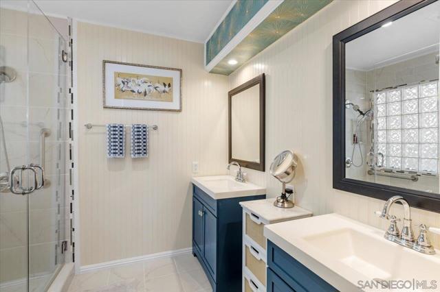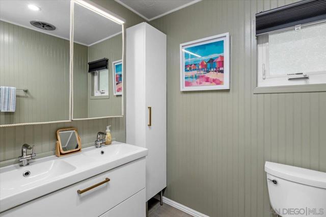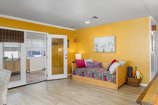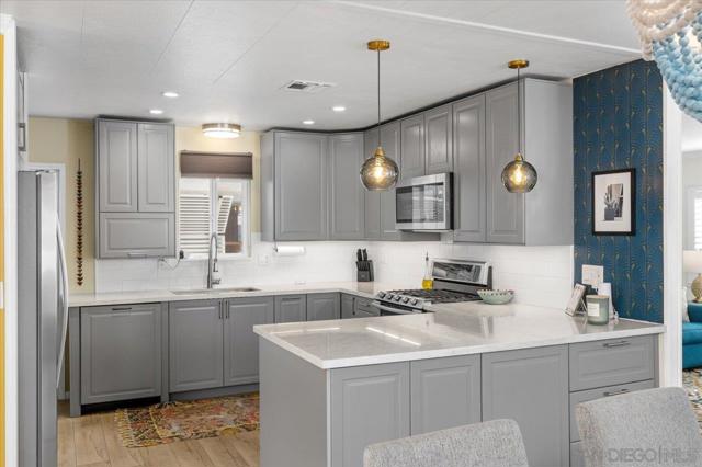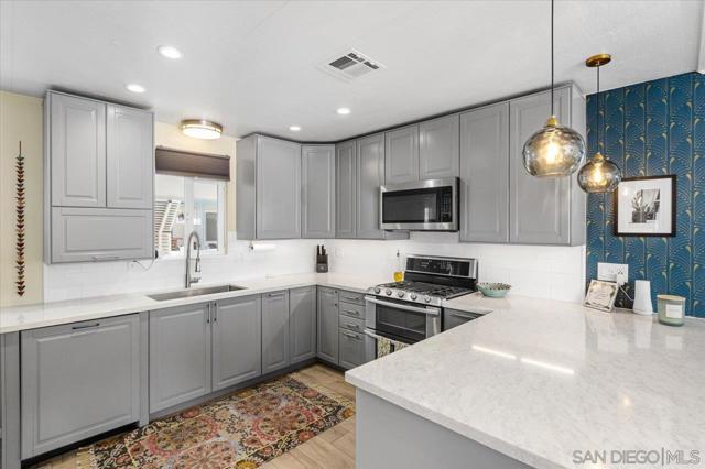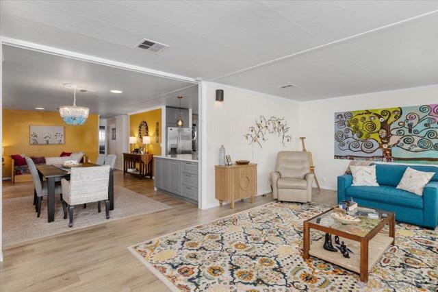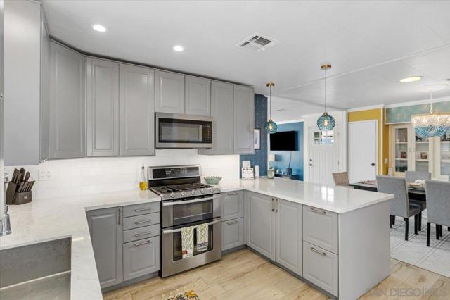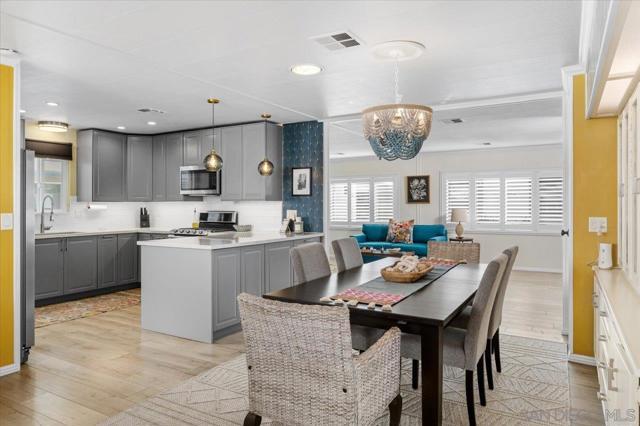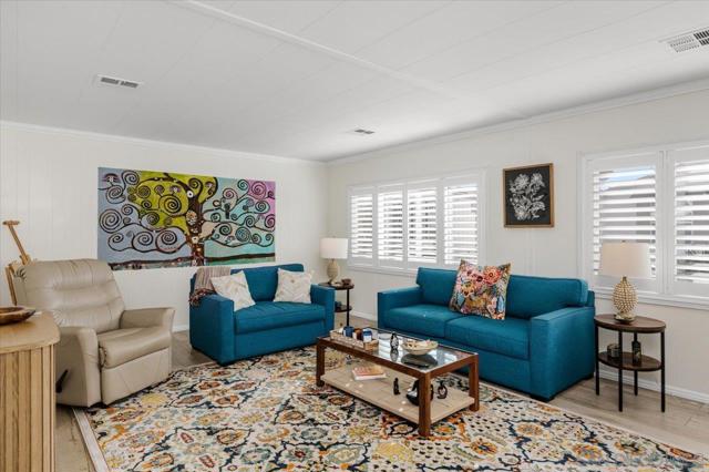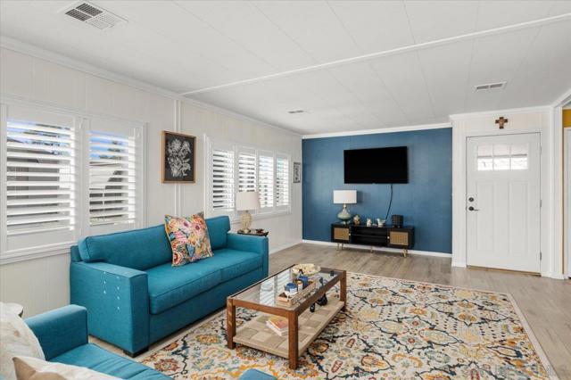 Colorful Bohemian Style, Steps Away From The Beach! This beautifully decorated home is ready to be yours! Freshly remodeled, SS High End Appliances, New Cabinetry, Stone Countertops, Upscale Lighting, Extra Large Sunroom, Brand New HVAC System, Waterless Tank System, Completely Remodeled Bathrooms, Located not far from the second pedestrian gate and 7 min walk to Carlsbad South State Beach! LARGE strip mall offers EVERY POSSIBLE amenity from shopping to services all just a walk across the street! Lakeshore Gardens has a multitude of community areas that are upscale, assessible and beautiful!
