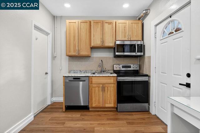 Welcome to this beautifully updated 2-bedroom, 1-bathroom unit that perfectly blends comfort and modern elegance. Step inside to a bright and open space featuring brand-new hardwood flooring throughout, creating a warm and inviting atmosphere. Large windows fill the home with natural light, while new recessed lighting adds a cozy and contemporary touch. The updated kitchen includes new stainless-steel appliances, ample counter space, and fresh interior paint—everything you need for effortless cooking. The home also features new window blinds for added privacy and style. Located in the highly desirable Pill Hill neighborhood of Oakland, this unit offers convenient access to local shops, dining, major freeways, and public transportation. A perfect blend of comfort, style, and location—don’t miss the opportunity to make this charming unit your next home! Apply with RentSpree https://apply.link/ujN5GQk