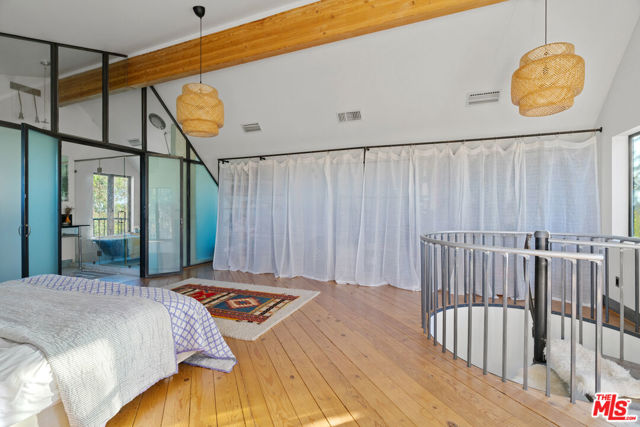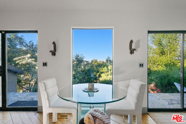 A tranquil retreat perched atop Fernwood in Topanga Canyon. This three-bedroom home offers ample living space with a large living room and a cozy family den. Two bedrooms on the lower level open to a light-filled garden and share a full bathroom. A circular staircase leads to the primary suite with built-in shelves and an ensuite bathroom featuring a vanity station and shower room. The bathtub is positioned beside a Juliet balcony with sweeping canyon views. The home enjoys views of Topanga Canyon and the surrounding mountains from both sides. Lush landscaping surrounds the property, providing privacy and immersion in nature. A spacious concrete patio extends the living space outdoors with a dining area, Green Egg grill, and pizza ovenideal for entertaining. The attached garage includes a gym and infrared sauna for your personal wellness moments. This is the perfect Topanga retreat, where peaceful canyon living meets everyday comfort. One-year furnished lease available January 1st.