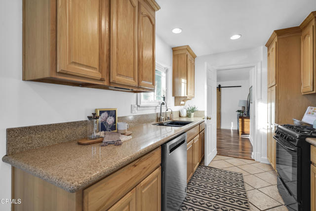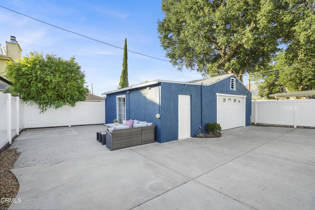 Welcome to 10851 Scoville Avenue, an inviting 3 bedroom and 2 bath home on a quaint South Sunland street framed by sweeping views of the southern San Gabriel Mountains. This charming home inspires beachy cottage vibes. Greeted by a fully fenced front yard and curated low-maintenance landscaping with a fruit producing orange tree this home offers a piece of California living. Sunny living area with an abundance of windows and updated kitchen with stone counters. Enjoy seamless indoor-outdoor living in the rear yard either on the spacious deck just off of the kitchen or on the second patio area perfect for dining al fresco under the stars. A long 55' driveway provides abundant off-street parking, ideal for an RV, trailer, or toys, plus a detached 2 car garage with an adjacent bonus room perfect for a home gym, office, or laundry space. With numerous thoughtful upgrades throughout and easy access to local hiking and riding trails, this home blends comfort, character, and SoCal lifestyle. 10851 Scoville is your home for the holidays!