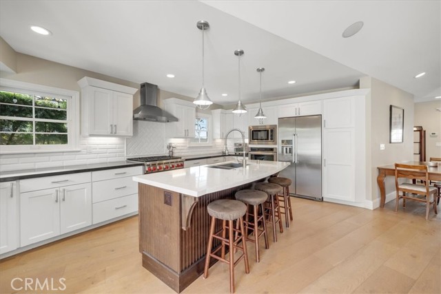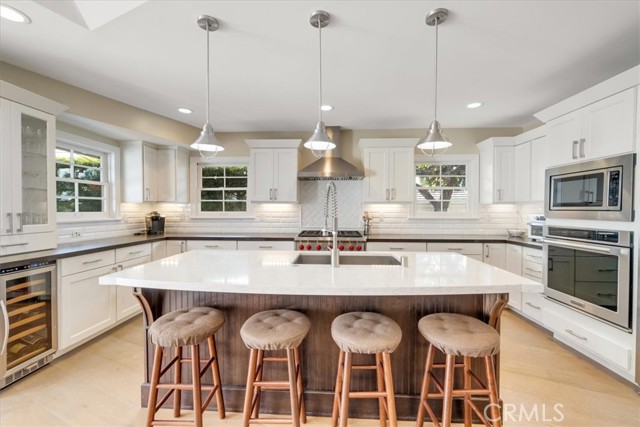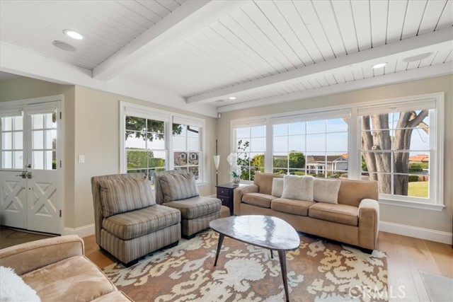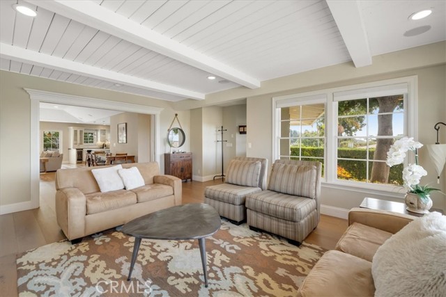 Fully-furnished, flexible lease (ideally 6-month minimum)! Espinosa Circle is a neighborhood renowned for its beauty and tranquil atmosphere: tree-lined streets, ocean views and brilliant sunsets. Nestled away from traffic, yet intimately connected to the community, with outstanding schools for all levels, sports facilities, walking trails and so much more. This furnished remodeled home offers ocean views from the front living area, the primary bedroom and 4th bedroom/office, including daily California sunsets. Upon entering you immediately feel a sense of connection between the large great room and casual front living area, while appreciating the ability to create privacy between the two spaces with hidden pocket doors. The renovated kitchen, equipped with top-notch professional Wolf range, built-in additional oven and microwave, and complemented by beautiful wire-brushed white oak floors that extend throughout most of the home, connects the chef with guests and a wonderful view of the lush green back yard. Relax in the primary bathroom, boasting a large vanity and fully tiled steam shower. With three additional spacious bedrooms, there is ample space for both relaxation and productivity, accommodating large beds and desks. Enjoy the tranquility of a neighborhood with minimal through-traffic, where this open floor plan fosters a sense of spaciousness and flow. New washer and dryer. Gather around both fireplaces and immerse yourself in the allure of the sea breeze, accompanied by hummingbirds, songbirds, and majestic peacocks. In "The Circle," every moment is a celebration of coastal living and the peace of home.