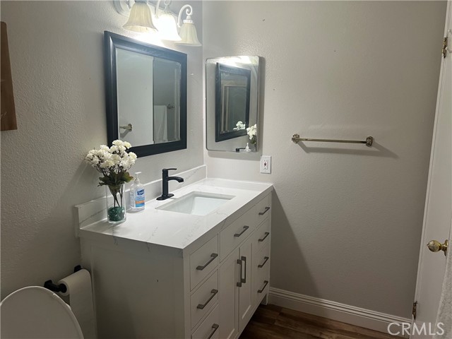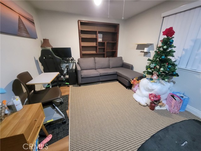 PLEASE READ THIS DESCRIPTION BEFORE INQUIRING: This is a 4bd/3.5ba 2752 sf home. Set up much like a triplex. This 2BD|2BA close to nearly 1000 sf. Entrance through side yard and into back door. You enter through a large entryway. Expansive Primary en suite bed/bath on the right has a built in makeup vanity and dual sink vanity all in the bedroom with privacy door for toilet and walk in shower. Primary bedroom is very large with 2 closets. 2nd bedroom is nicely sized with large closet. Both bedrooms have wall mounted TV's. The living area includes a wall unit and wall mounted tv. There is a small closet in this room. Hallway currently houses fridge and built in cabinetry. Other end of this hall is the 2nd bathroom (with tub). Small kitchenette area. In garage is private washer/dryer. Parking privilege in garage and tandem style in driveway. Plenty of street parking. SHARED ARE: ROOF/COMMON WALLS, GARAGE, UTILITIES, BACK PATIO. Located just across street from Mile Square park. Tons of activities from pickleball to golf. Local schools, restaurants, shopping and Costco. Freeway cloe and Huntington Beach is only miles away. Location, Location, Location.