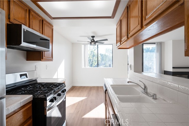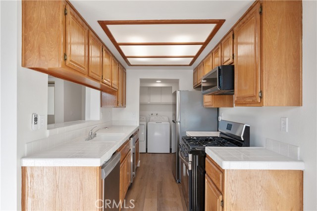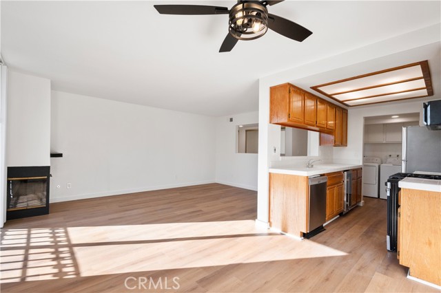 Welcome to Casa Verde Estates! This bright one-bedroom/one-bathroom corner unit condominium offers city and community views framed by mature trees. The home features new luxury plank flooring, brand-new appliances, a built-in wine refrigerator, and fresh paint throughout. Enjoy a cozy fireplace, a private balcony with lovely views, and a convenient in-kitchen laundry room with additional storage. The unit includes two parking spaces and is ideally located near shops, restaurants, parks and provides quick access to the freeway.